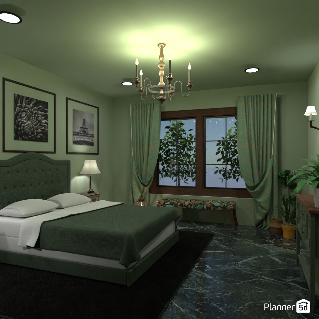 Design a bedroom in green colors!