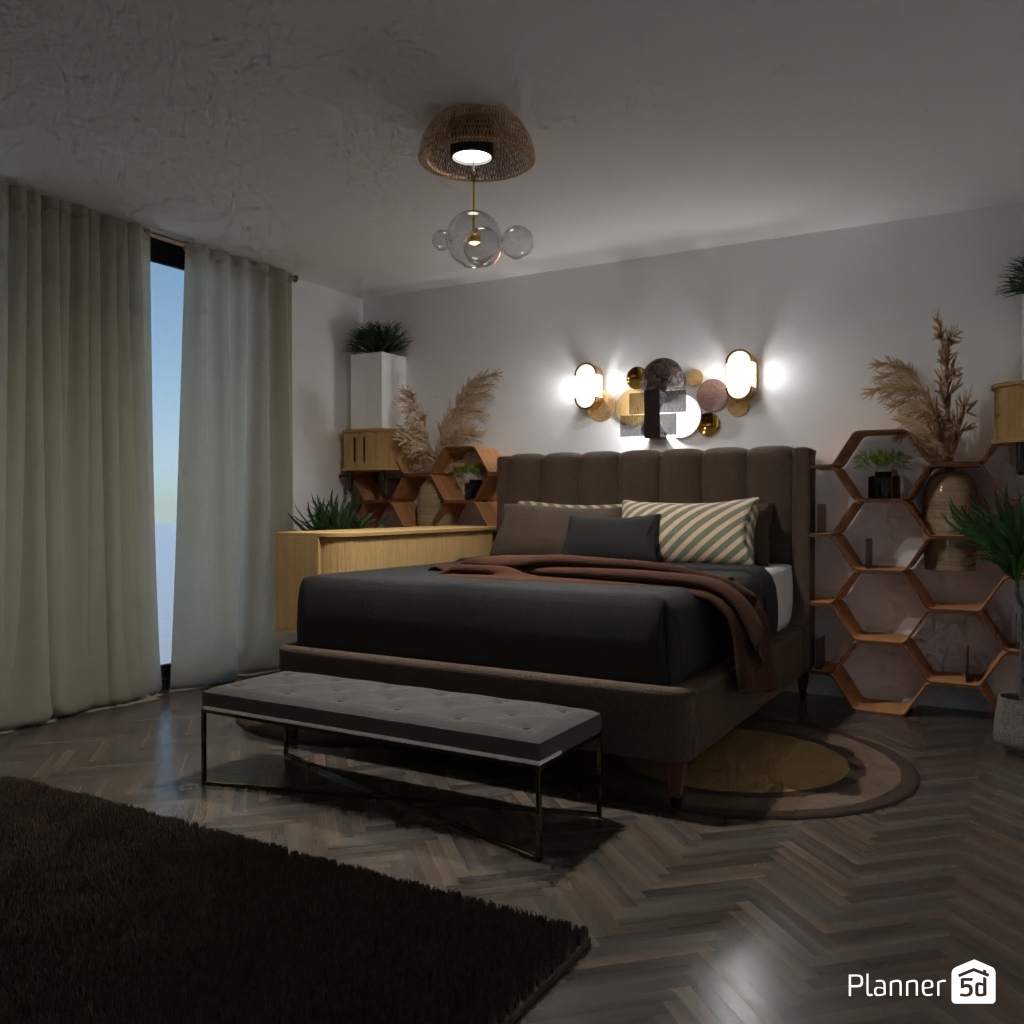 Design a luxurious and cozy hotel room.
