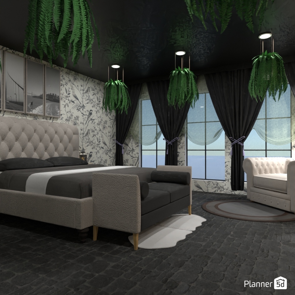 Design a dark and dramatic room using deep colors, mood lighting, and luxurious textures.
