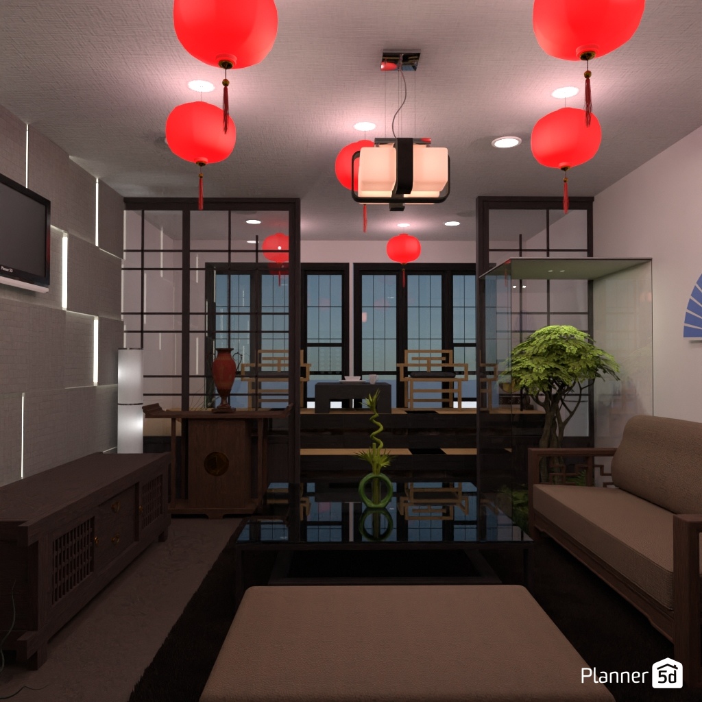 Design a Chinese style living room area for the holiday.