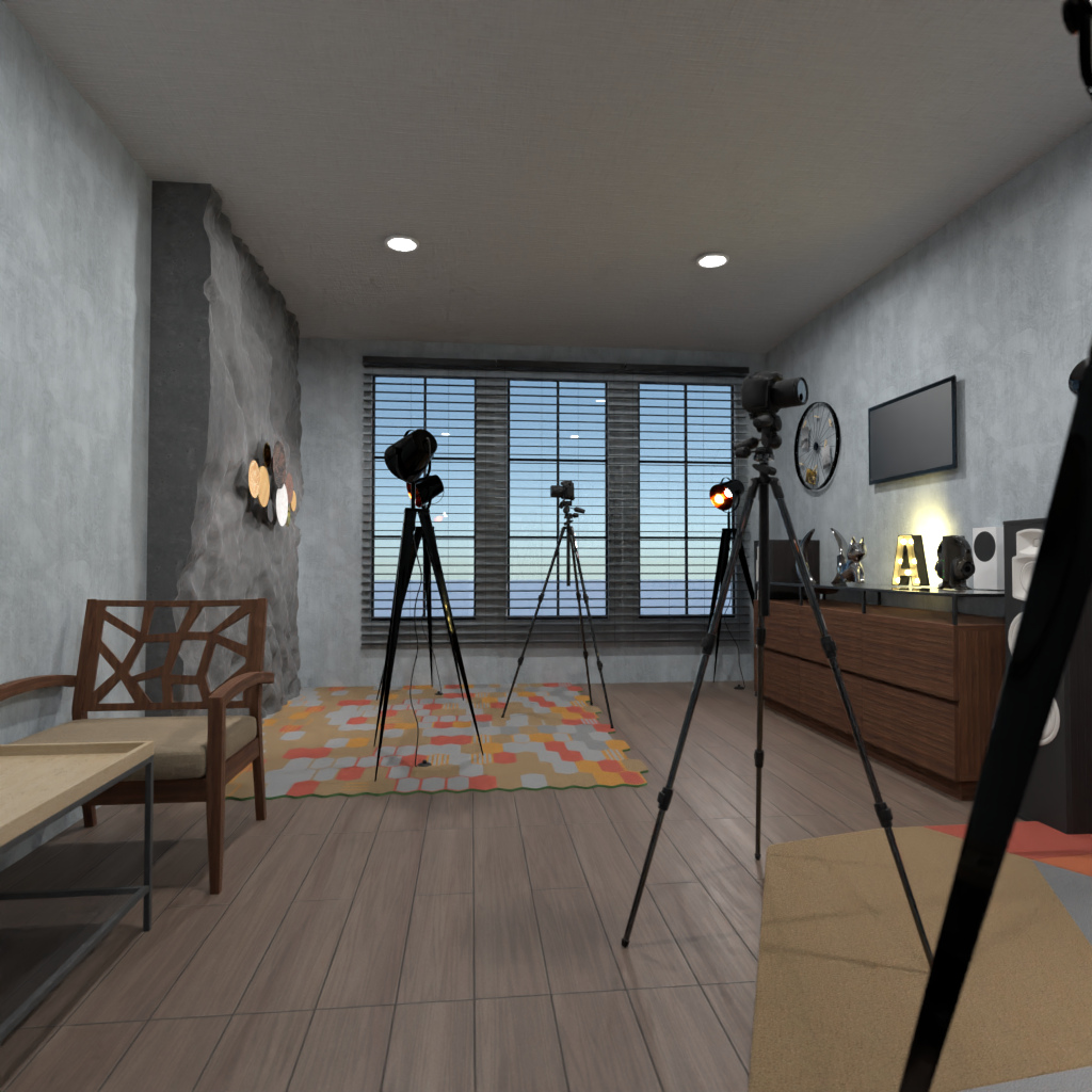 Design Sie ein High-Tech-Wohnzimmer mit TV-Bereich.