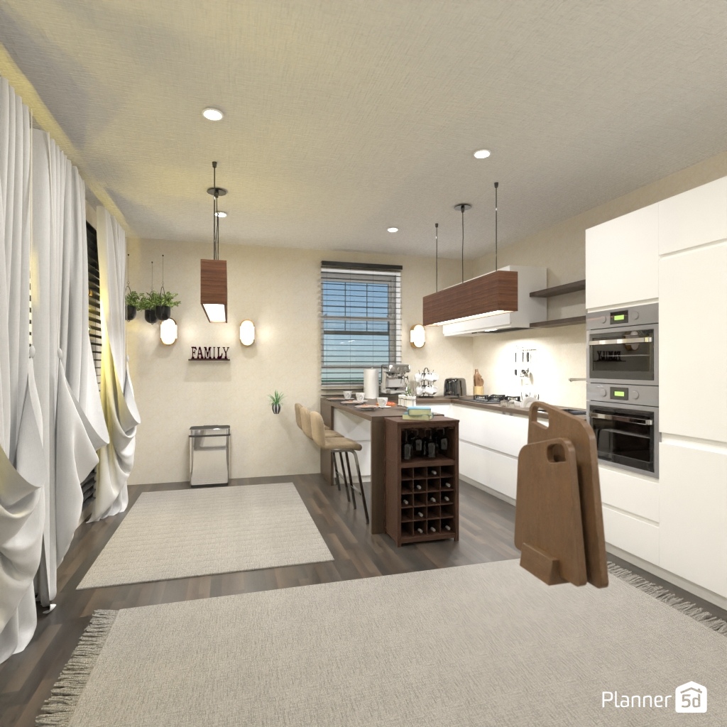 Gestalten Sie eine funktionale und stilvolle Küche für einen Kochbegeisterten.