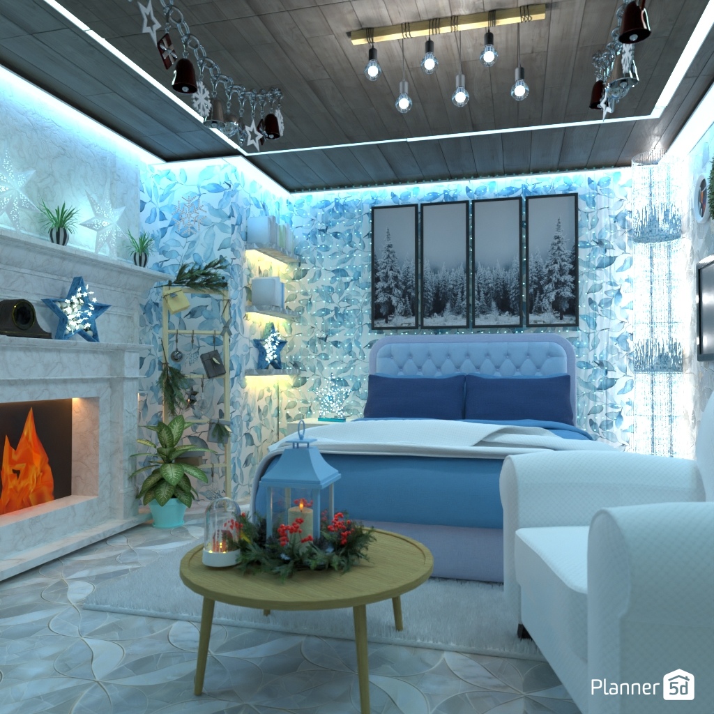 Gestalten Sie ein Schlafzimmerinterieur, das mit dem Winter verbunden ist.