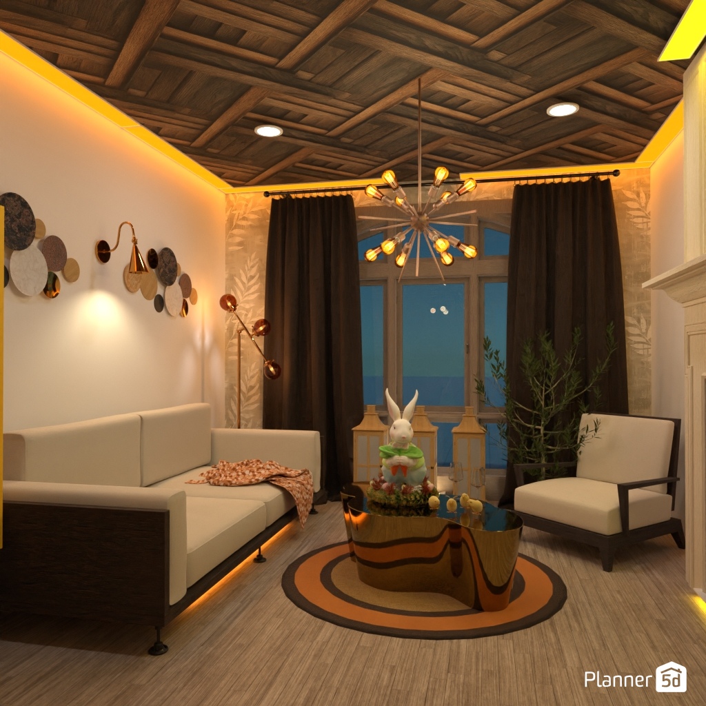 Gestalten Sie ein helles Wohnzimmerinterieur mit grün-gelben Akzenten.