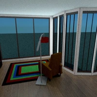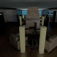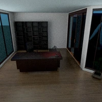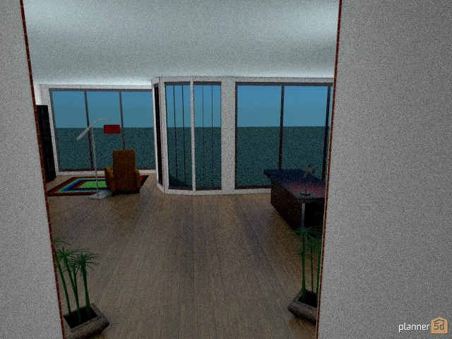 Spacious one story with 2 bedrooms. 2 sitting areas on either side of the fireplace. Each room has its own outdoor space. Modern style and quite livable. Many windows add lots of light during the day. Huge kitchen with glass surroundings. Excellent decor.