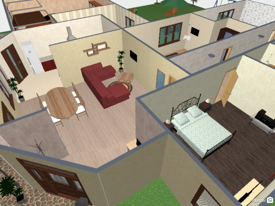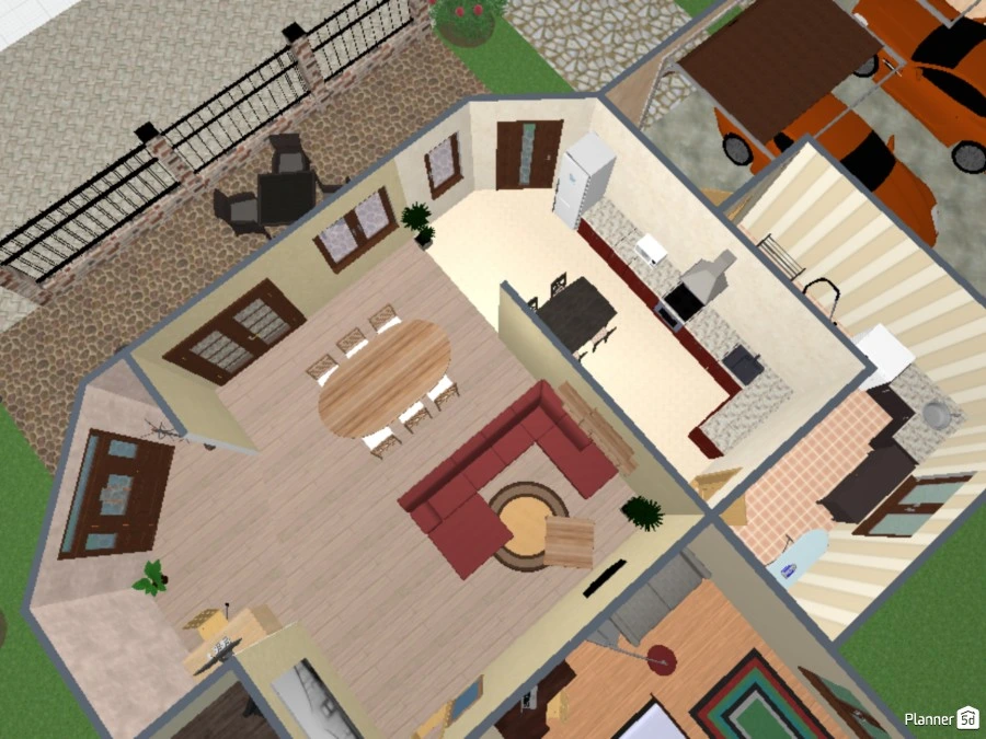 Maison avec une entrée donnant sur le salon salle à manger. Cuisine avec cellier qui communique avec le garage. Des ouvertures sur l'extérieur. 4 chambres (surface importante) dont une avec dressing. Salle de bain séparée des toilettes. Espace extérieur vaste.