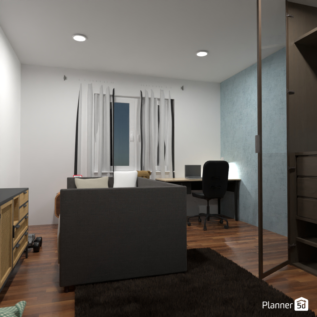 Diseña un dormitorio infantil usando el color azul como el tono principal del interior.