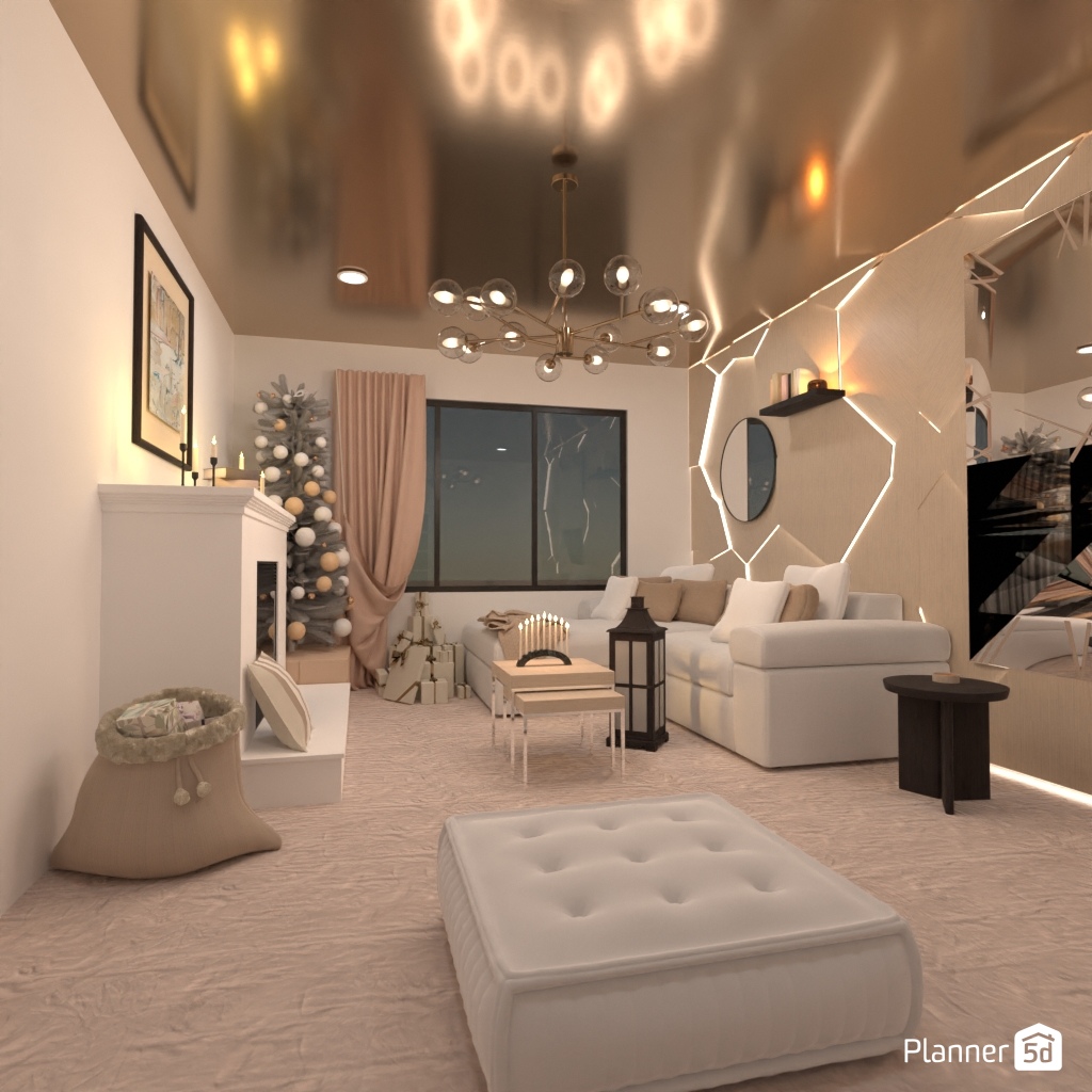 Diseña una sala de estar con adornos navideños.