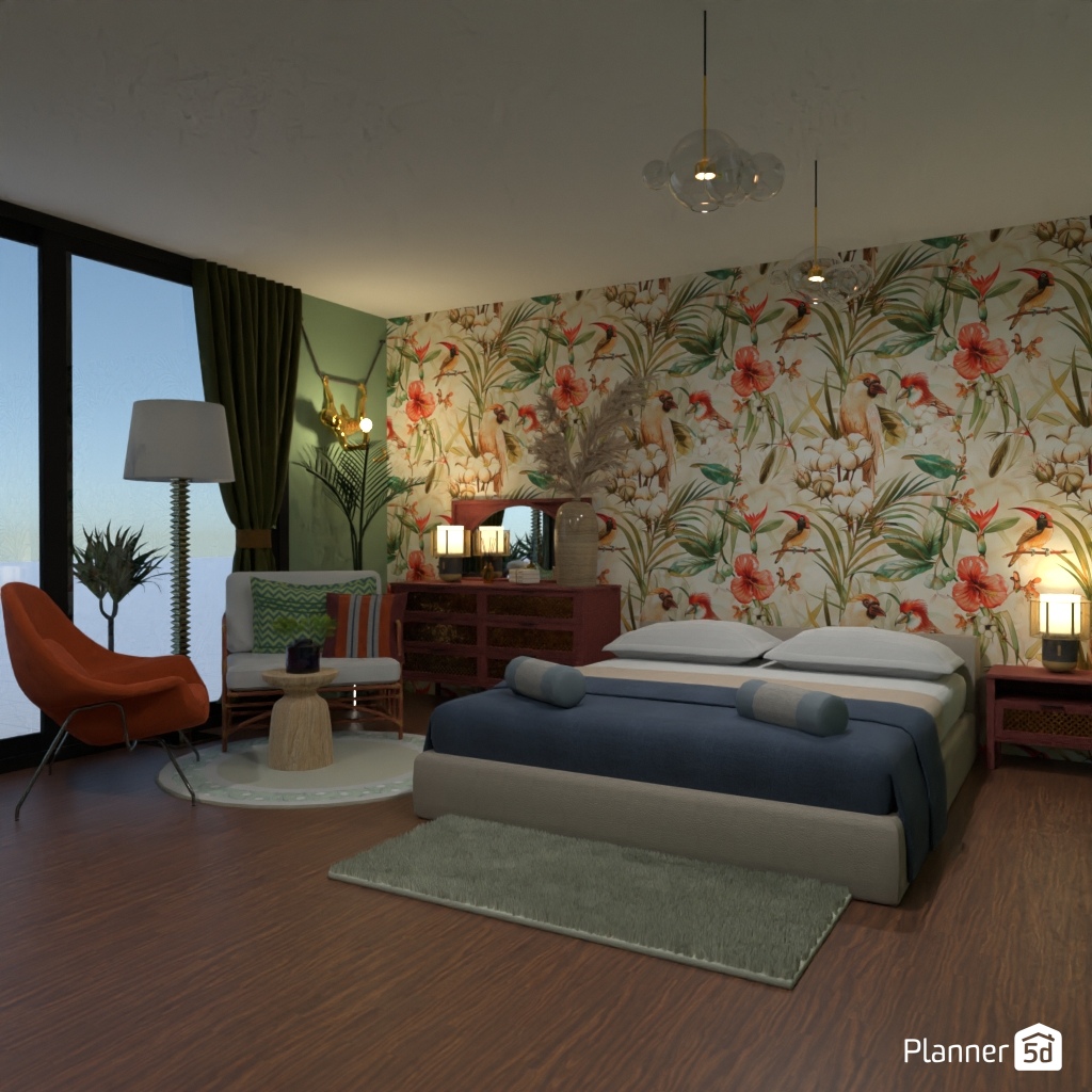 Diseña una habitación de hotel lujosa y acogedora.
