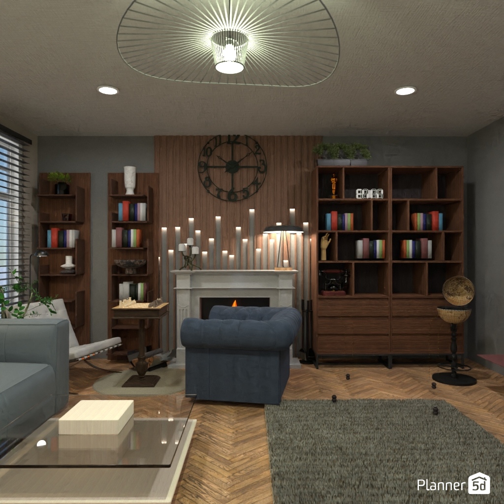 Diseña una sala de estar con materiales como ladrillo, metal y cuero.