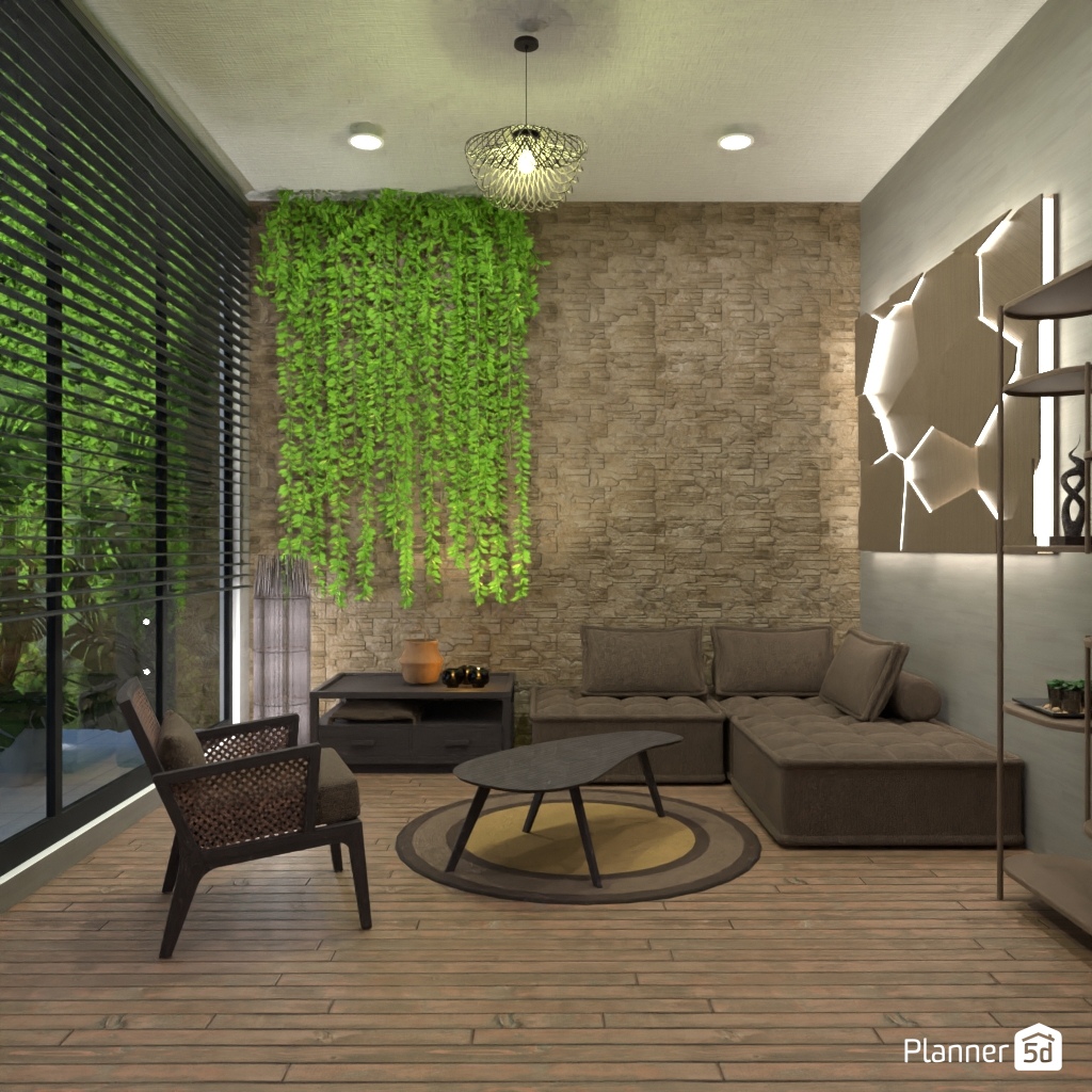 Diseña el interior de una sala de estar con texturas y colores naturales.