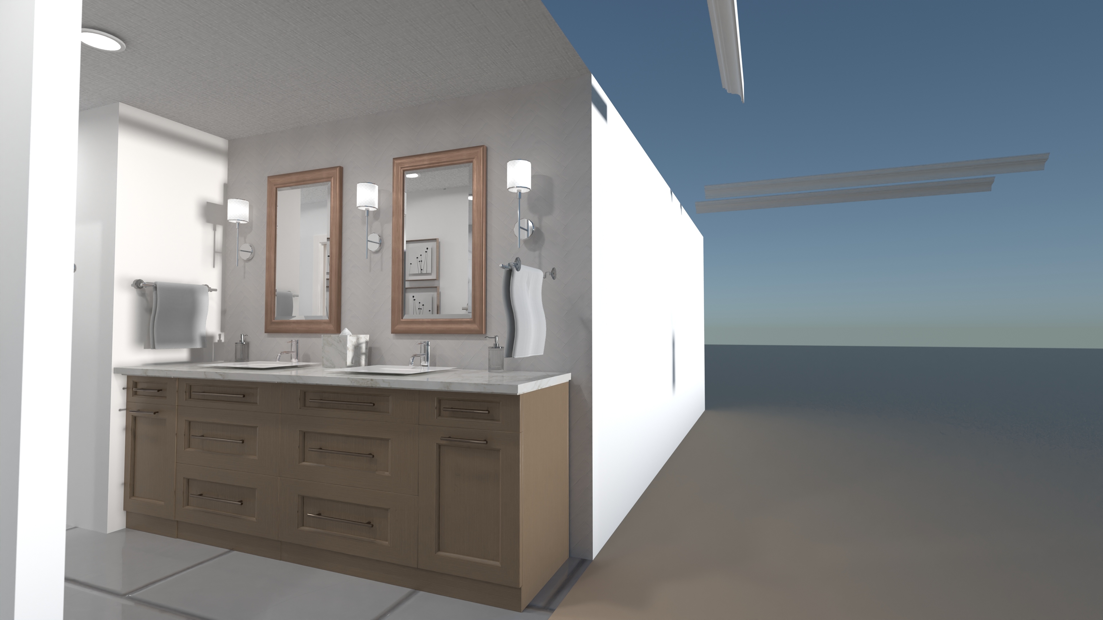 Pretz 2 vanity with drawers on end