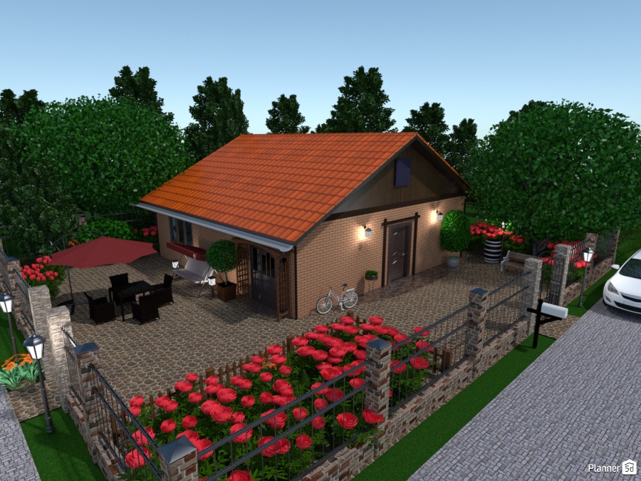 Загородный дом с небольшим цветочником. Площадь дома 82 м.кв.