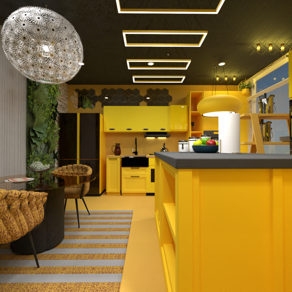 Concevez une cuisine en jaune. Gagnez un mois d'abonnement gratuit. Le gagnant reçoit un abonnement gratuit d'un mois.