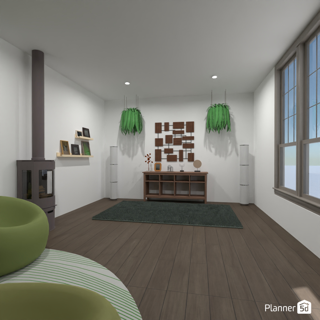 Concevez l'intérieur d'un salon sans canapé.
