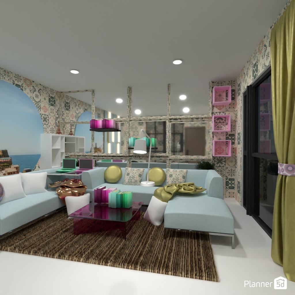 Concevez un intérieur de salon avec différentes formes géométriques.