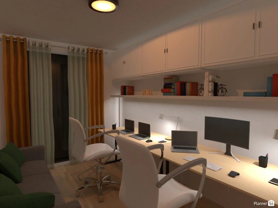 Develop a home office design that ensures an ergonomic and stylish working area with everything in its place.