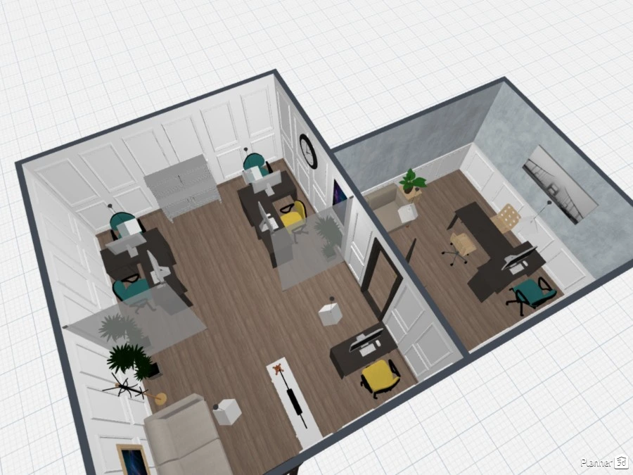 Use the office design planner to create a functional and ergonomic working space featuring recreation, meeting, and other zones to meet the need of employees.
