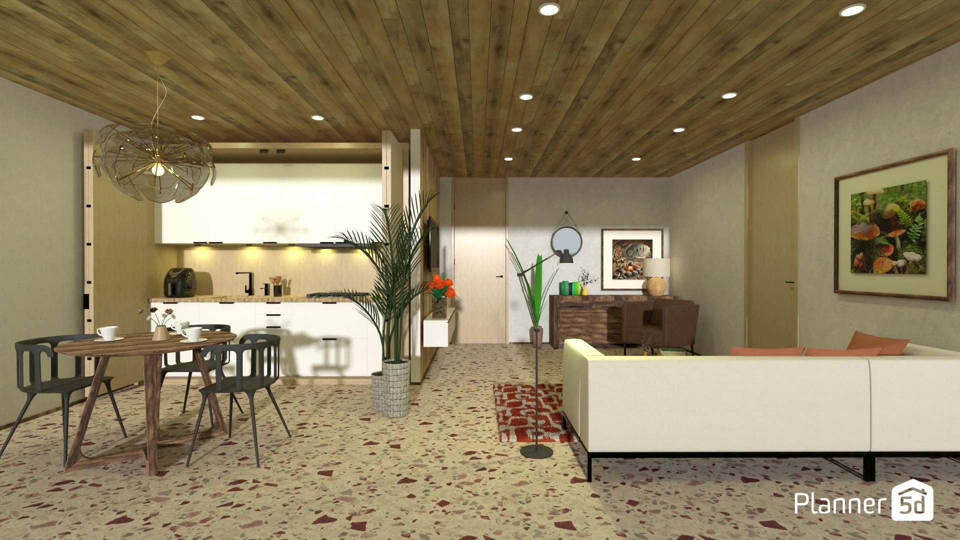apartamento con acabados en texturas y materiales naturales. muebles funcionales y acentos que evocan la naturaleza