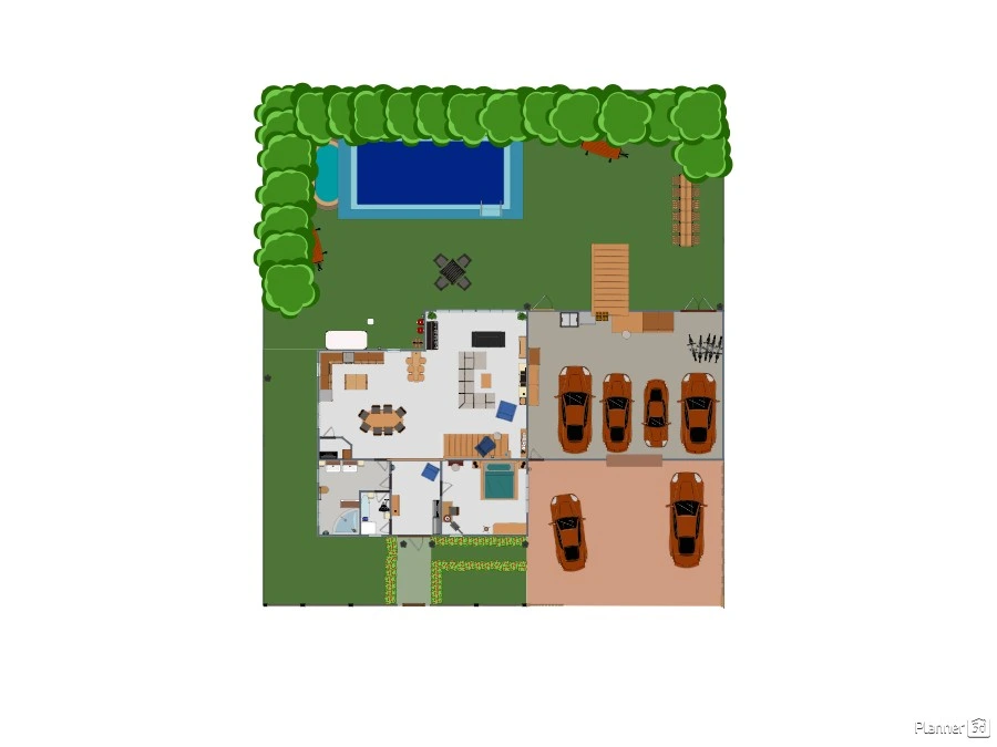 Wohngemeinschaft für sieben Personen plus Gästezimmer. Vier Bäder. Großer Wohn-, Ess- und Kochbereich. Garage und Hof vorhanden. Großer Gartenbereich mit Pool. Dachterasse und Balkon.
