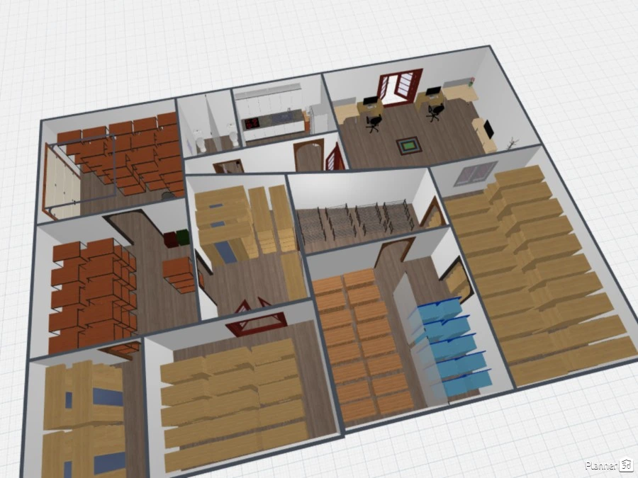 Use the office design planner to create a functional and ergonomic working space featuring recreation, meeting, and other zones to meet the need of employees.