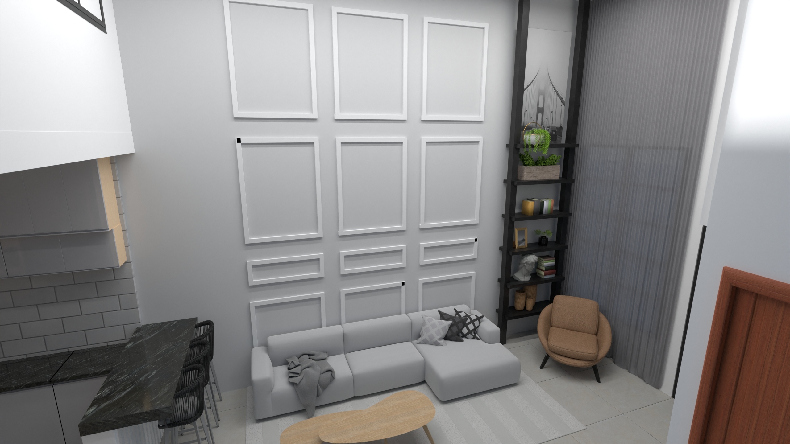 Sala Parede Cimento Queimado Invisível Projetor