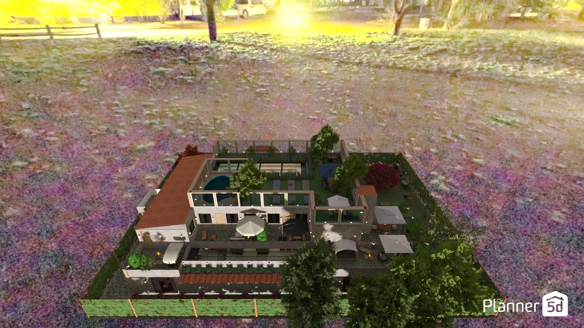 With our 3D garden planner, you can easily arrange your landscape design with all trees and plants placed organically in the backyard.
