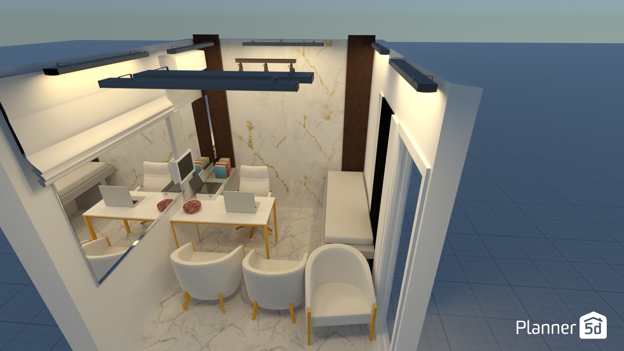 Use the office design planner to create a functional and ergonomic working space featuring recreation, meeting, and other zones to meet the need of employees.