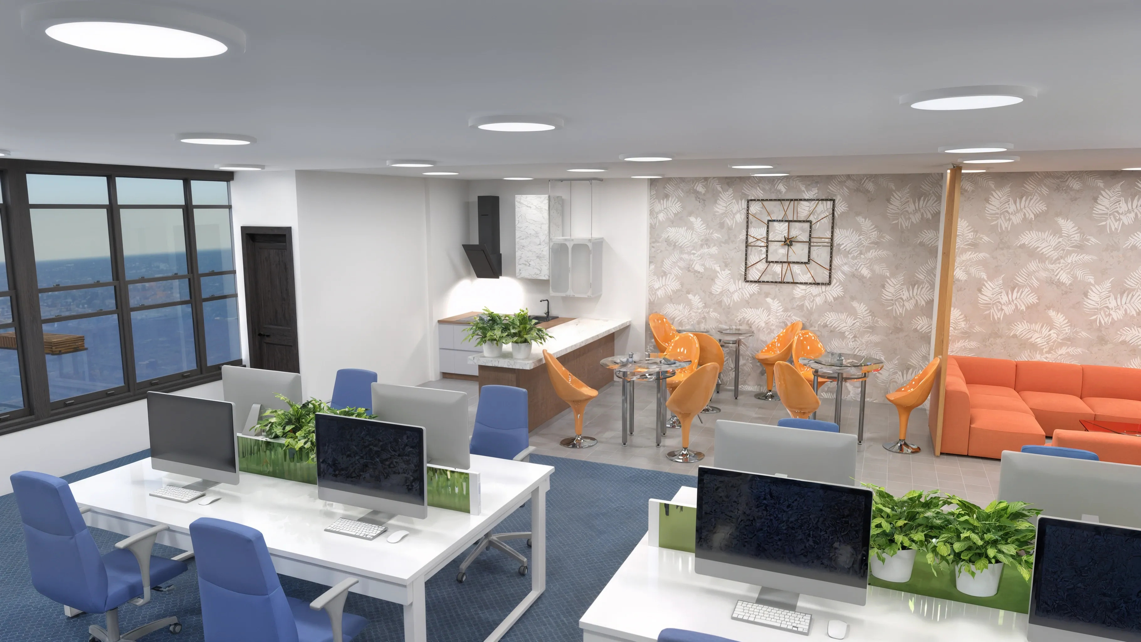 Develop a home office design that ensures an ergonomic and stylish working area with everything in its place.
