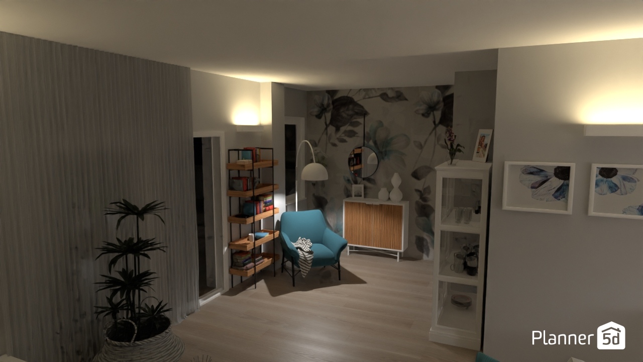 un angolo ricavato al soggiorno,per stare in relax,bere una tisana, leggere un buon libro,i toni di azzurro polvere invitano al relax