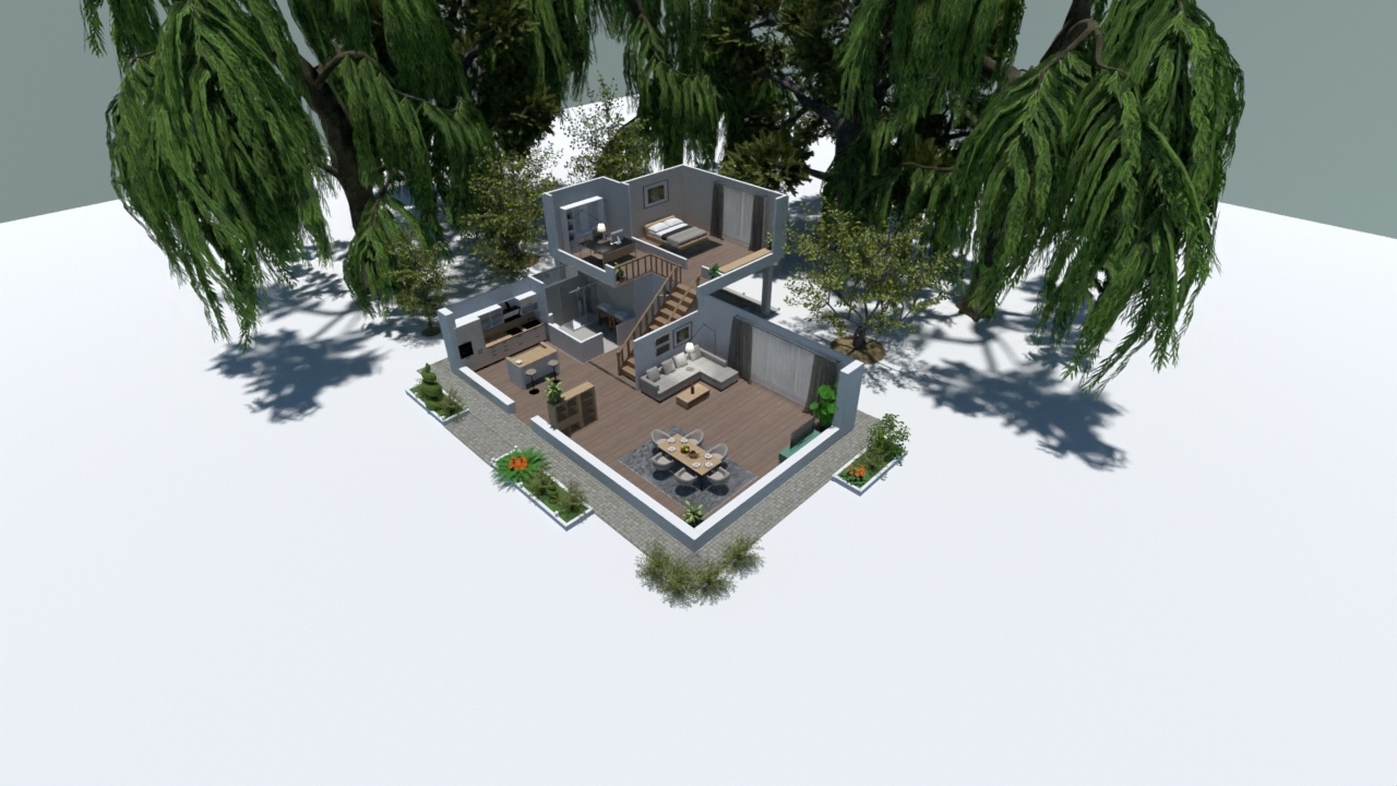With our 3D garden planner, you can easily arrange your landscape design with all trees and plants placed organically in the backyard.