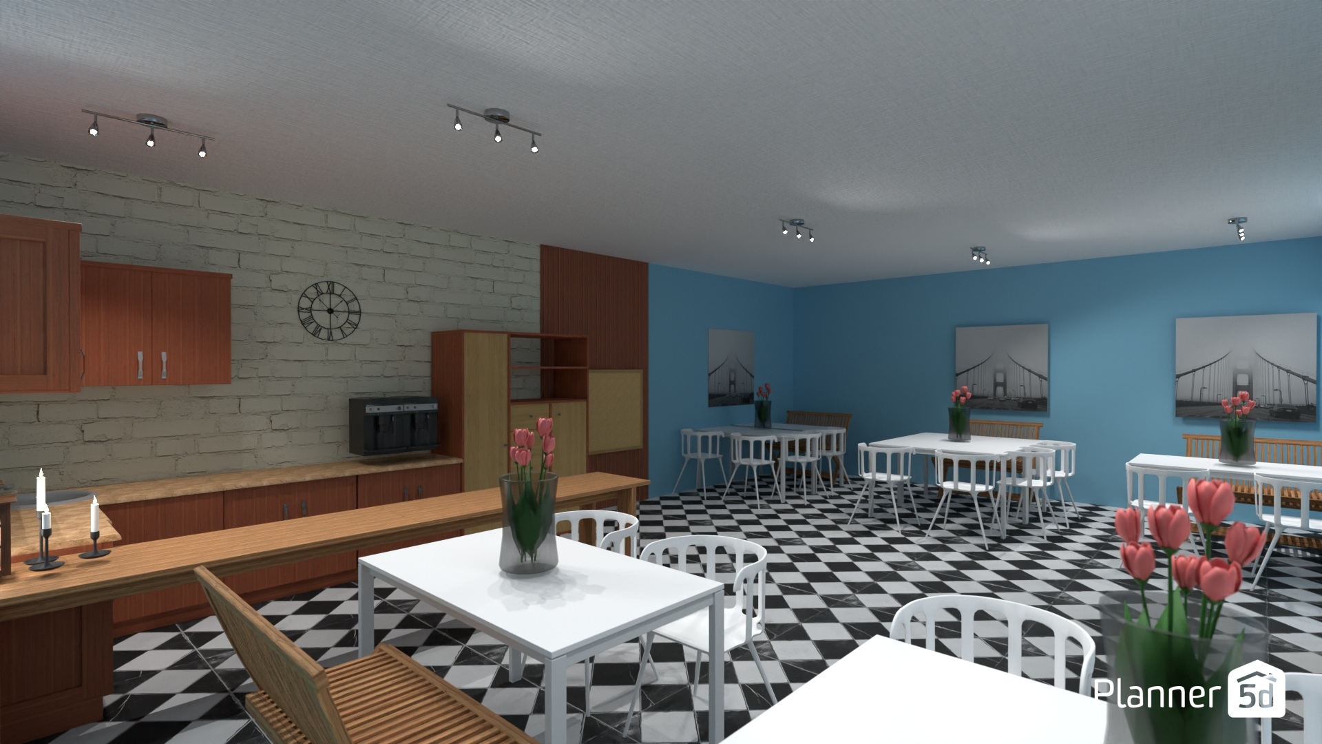 Welcome inside to this fresh, cosy and stylish café, where both customers and workers alike can feel relaxed, safe, comfortable and peaceful. The newly picked flowers add a wonderful touch to this extremely inviting café. Do come on in!