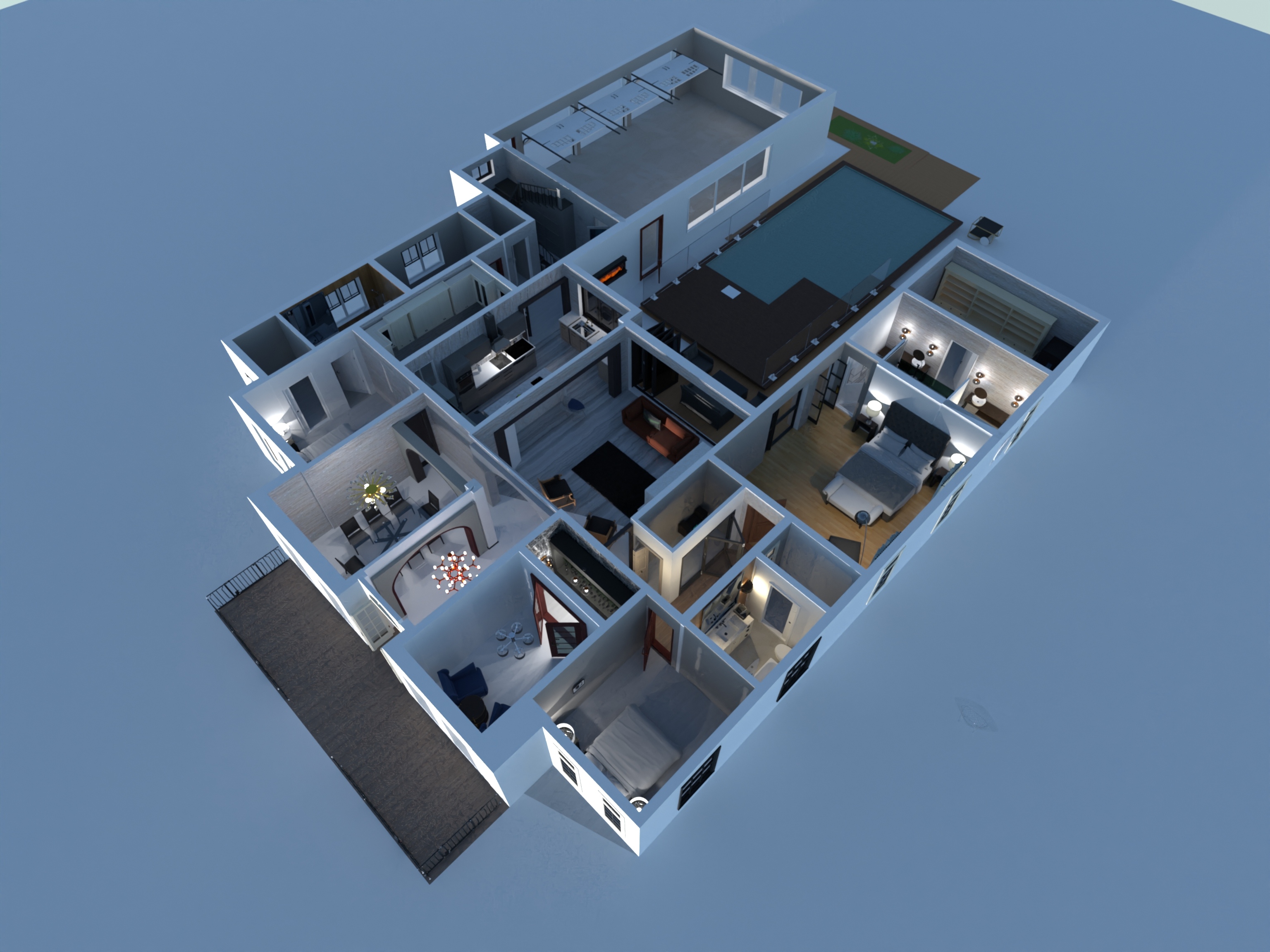 Overall floor plan layout of home 3D