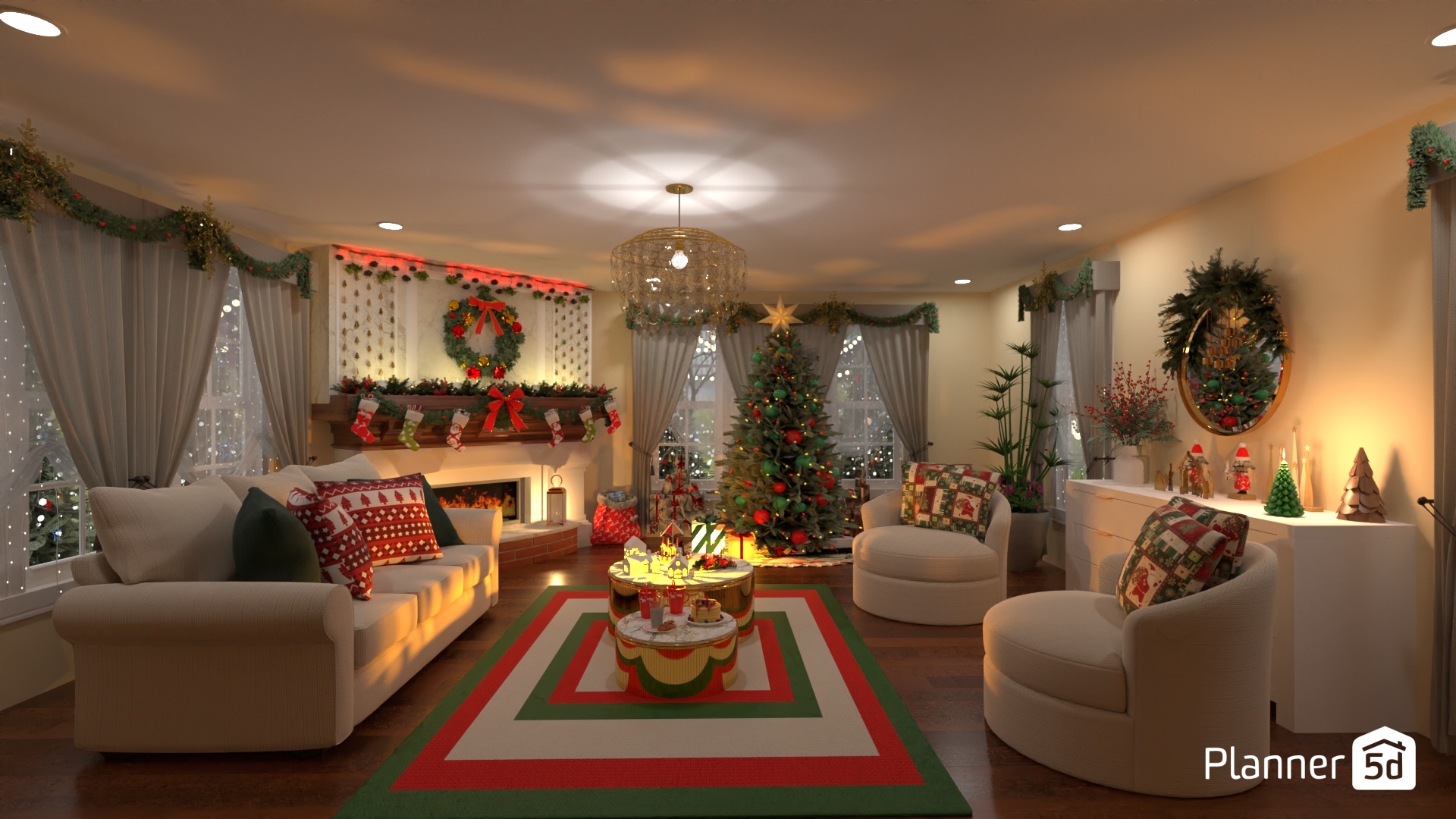 Salón navideño, lleno de colorido y decoración