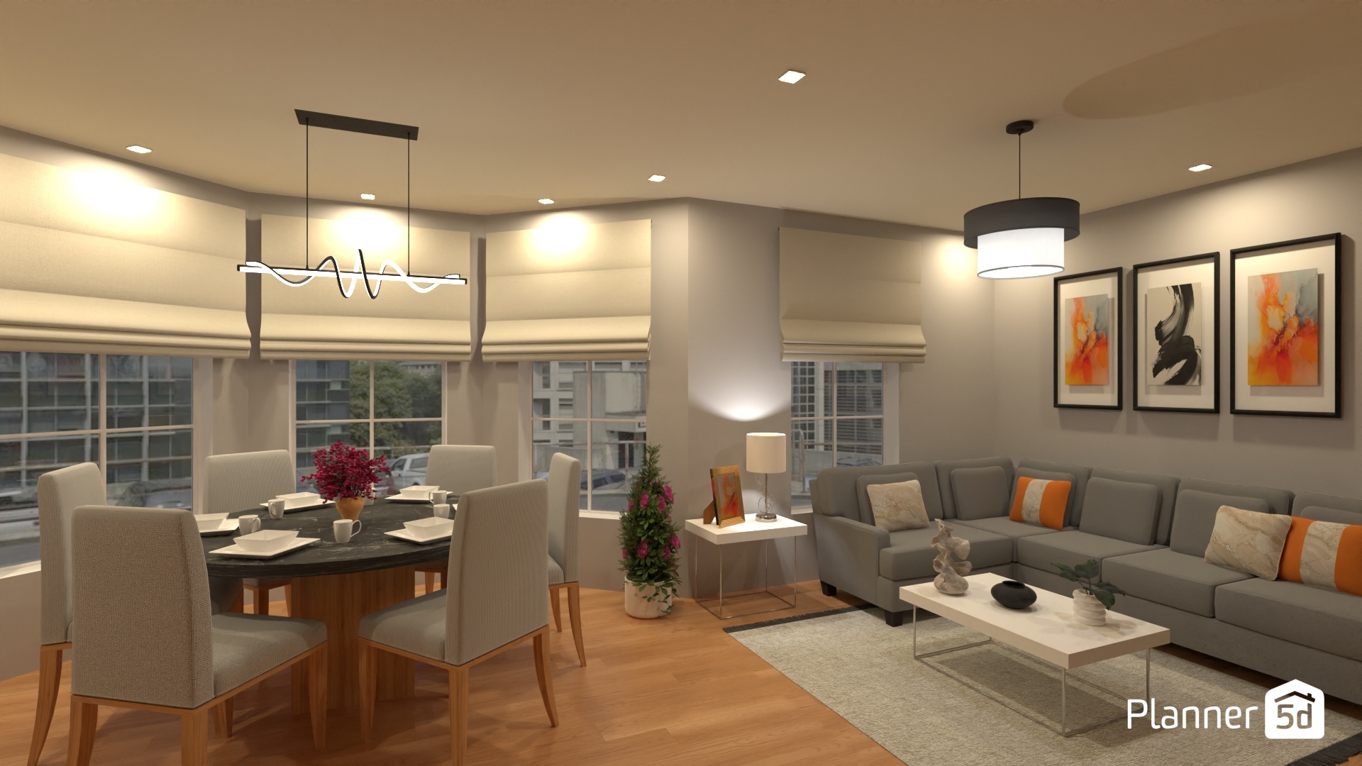 Sala y comedor en un solo ambiente abierto