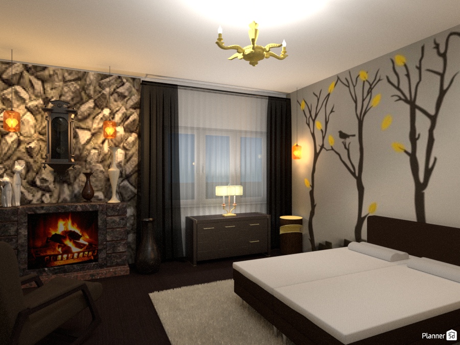 Спальня с камином