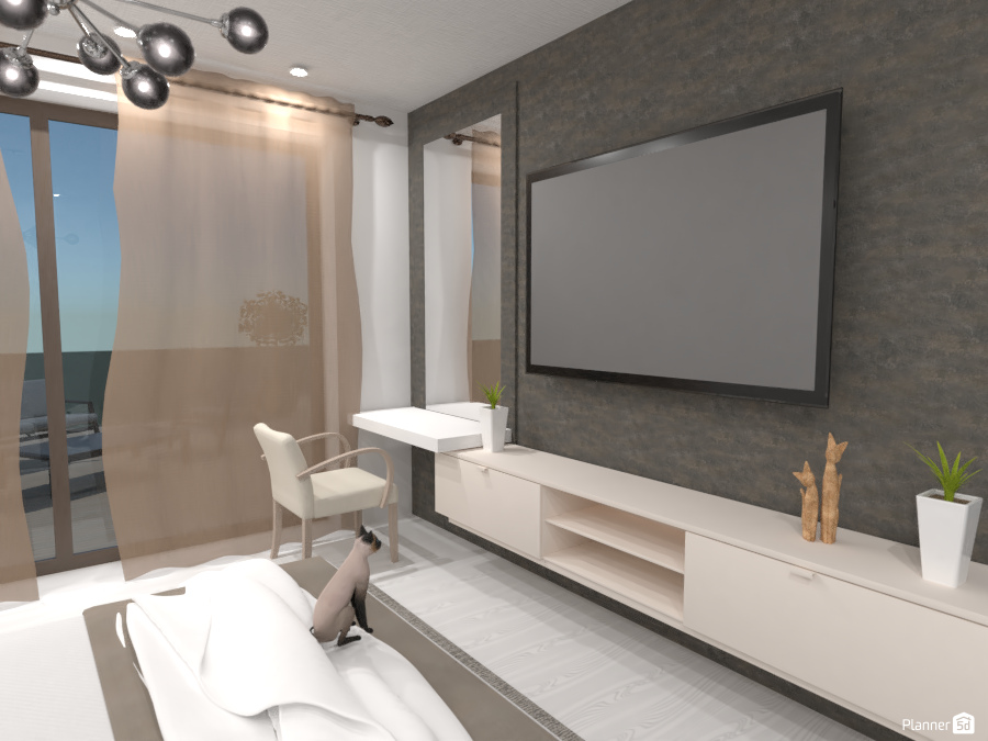 Bedroom with a cat and a dressing table
