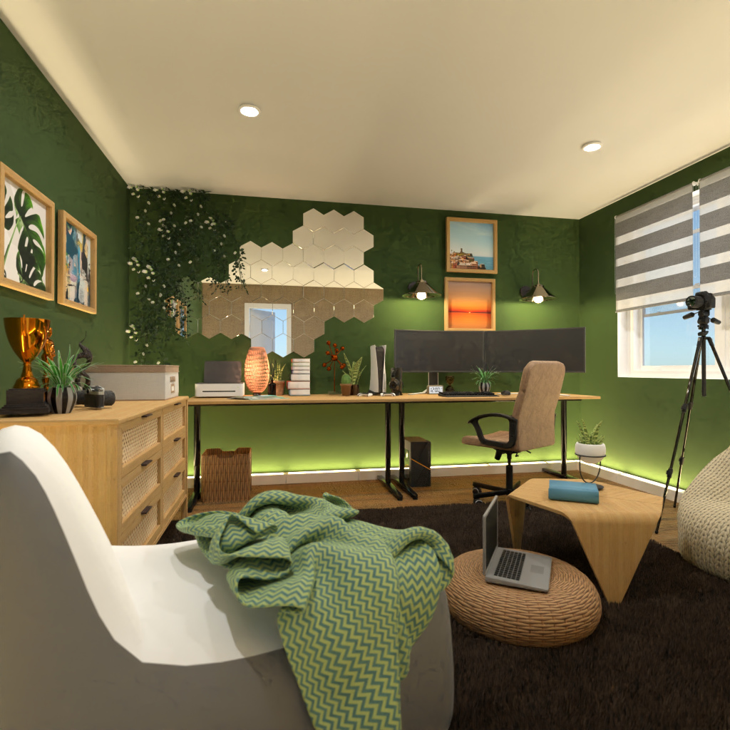 Develop a home office design that ensures an ergonomic and stylish working area with everything in its place.