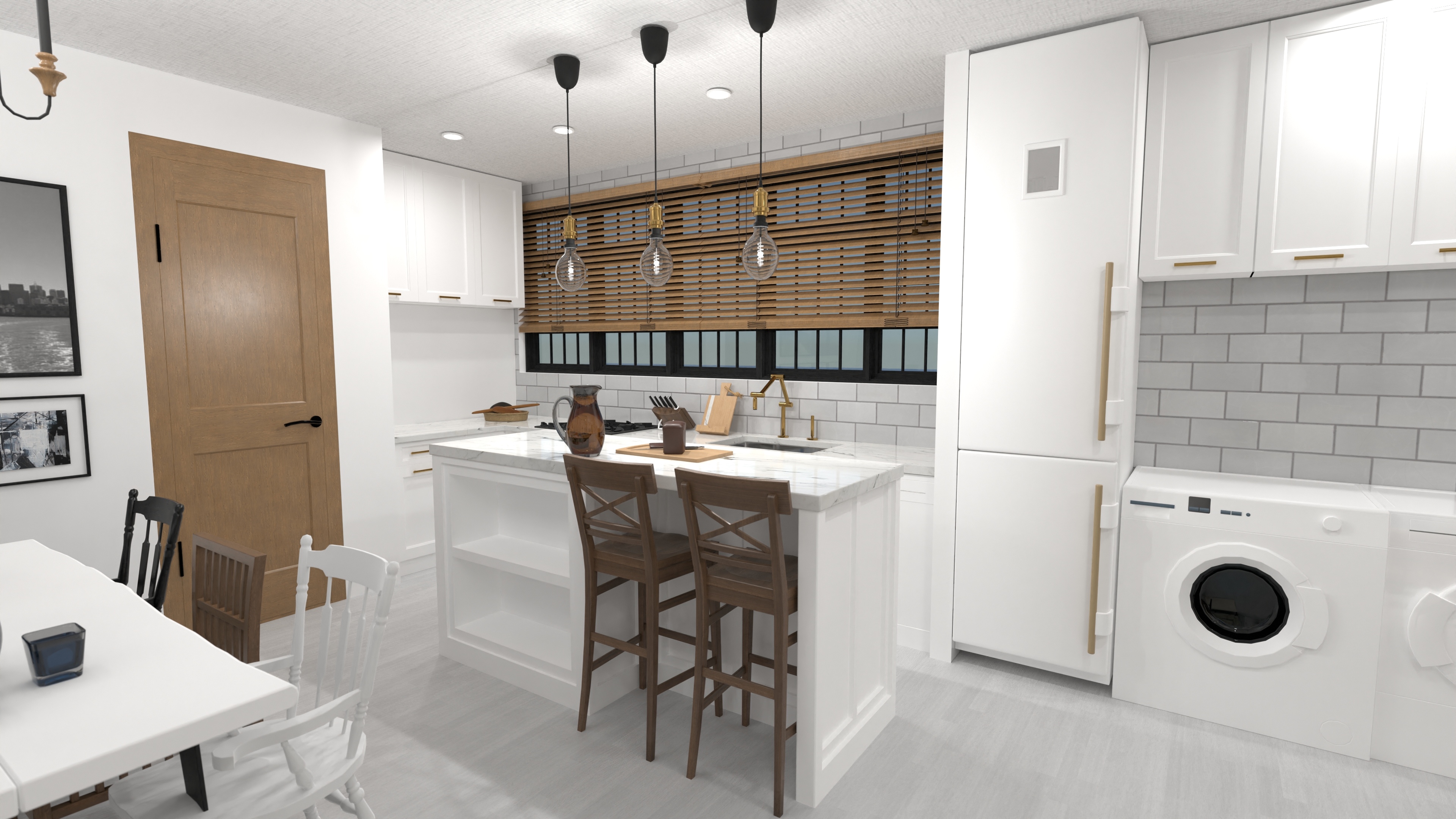 - Full-size washer & dryer tucked beside kitchen