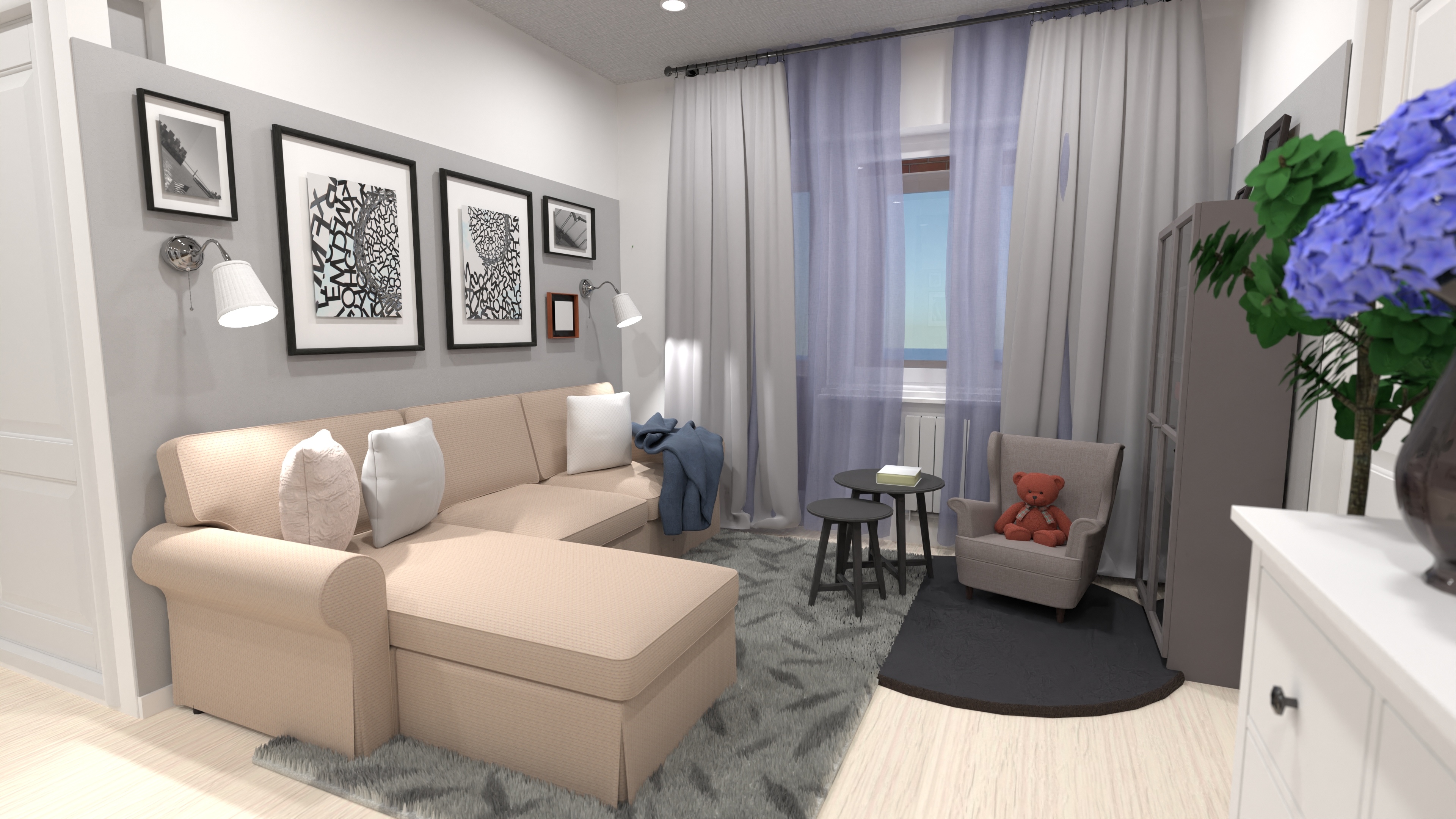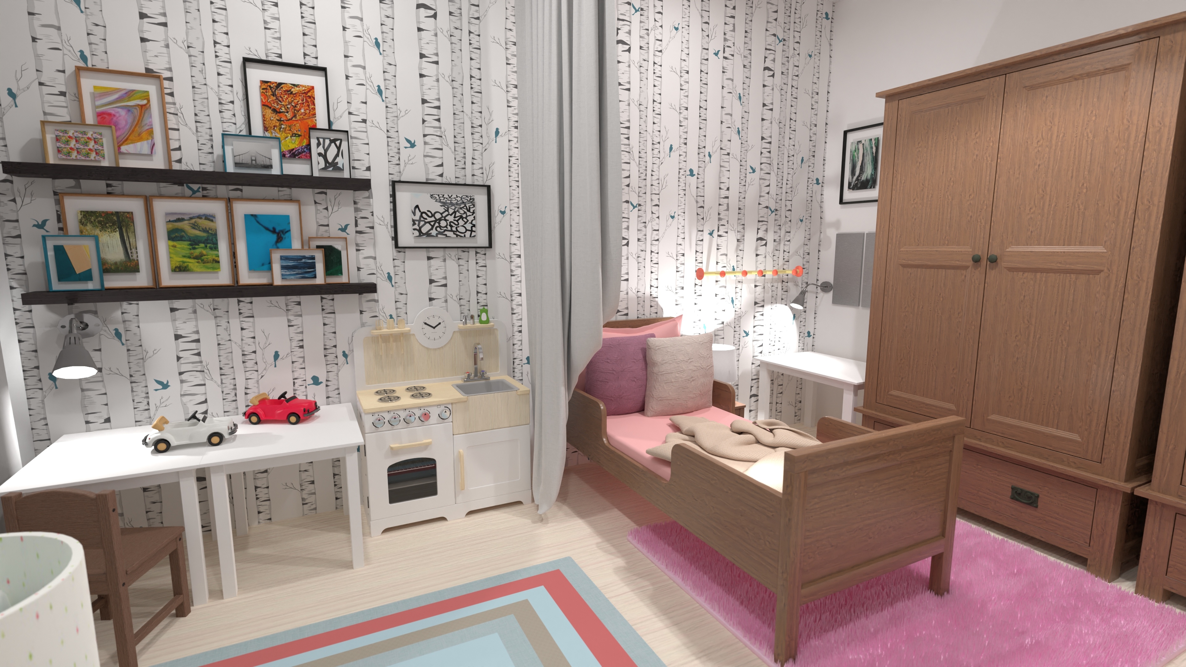 This charming small apartment floor plan makes the most of its 624 sq ft footprint with a bright, open-concept living and dining area that seamlessly integrates the kitchen. Natural wood floors and neutral walls create an inviting, calm backdrop. A separate children’s room—complete with built-in storage—sits apart from the master area, ensuring privacy and play space. A full bathroom offers both a tub and shower, plus in-unit laundry for ultimate convenience.