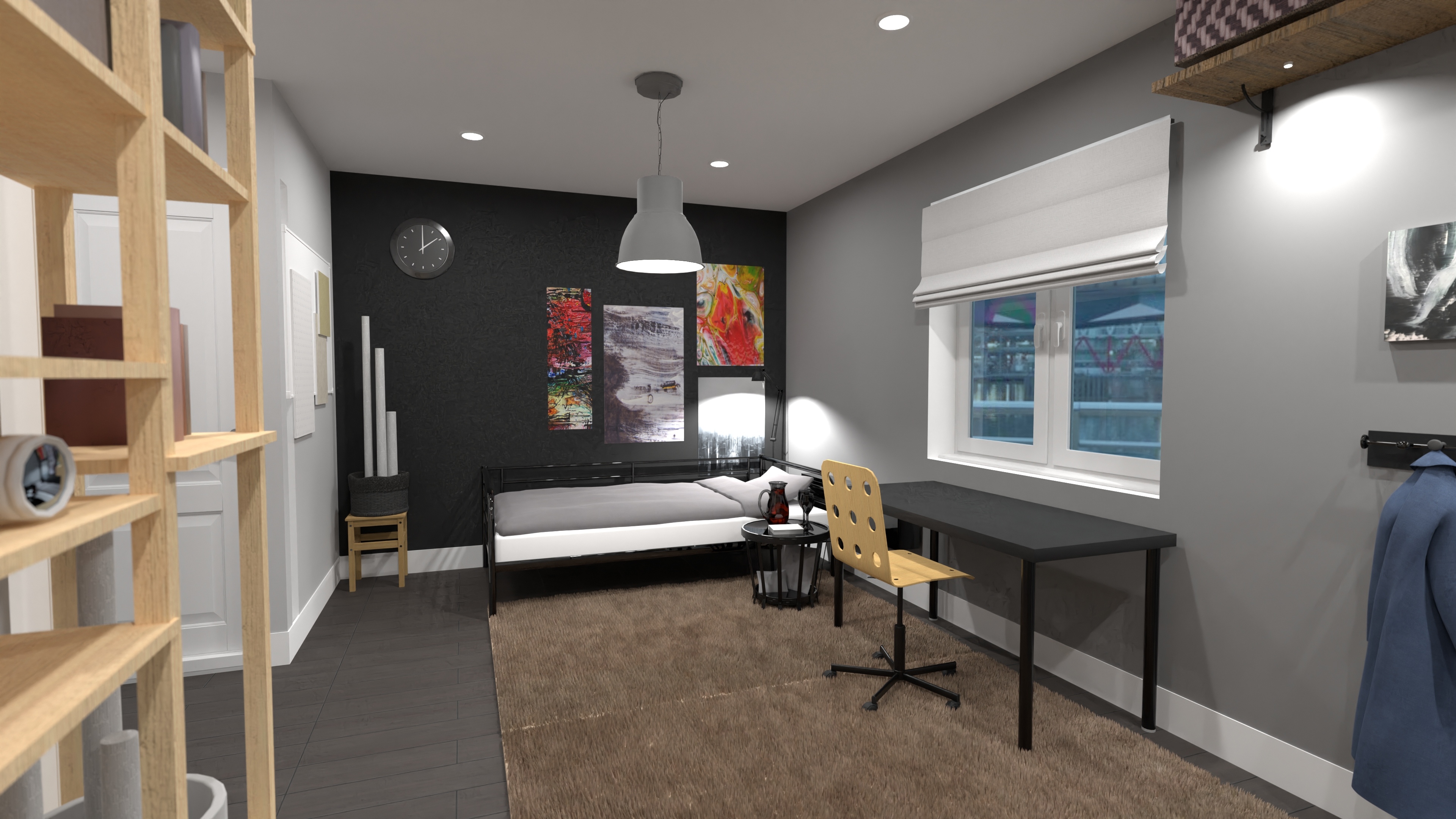 This 400 sq ft Scandinavian studio apartment plan showcases minimalist elegance and versatile design. The open living area integrates a multi-functional daybed, workspace, and smart storage solutions to maximize every inch. A full bathroom, a compact kitchen, and a private balcony enhance comfort and functionality. Clean lines, natural materials, and ample natural light create a serene sanctuary—perfect for urban dwellers seeking style and efficiency.