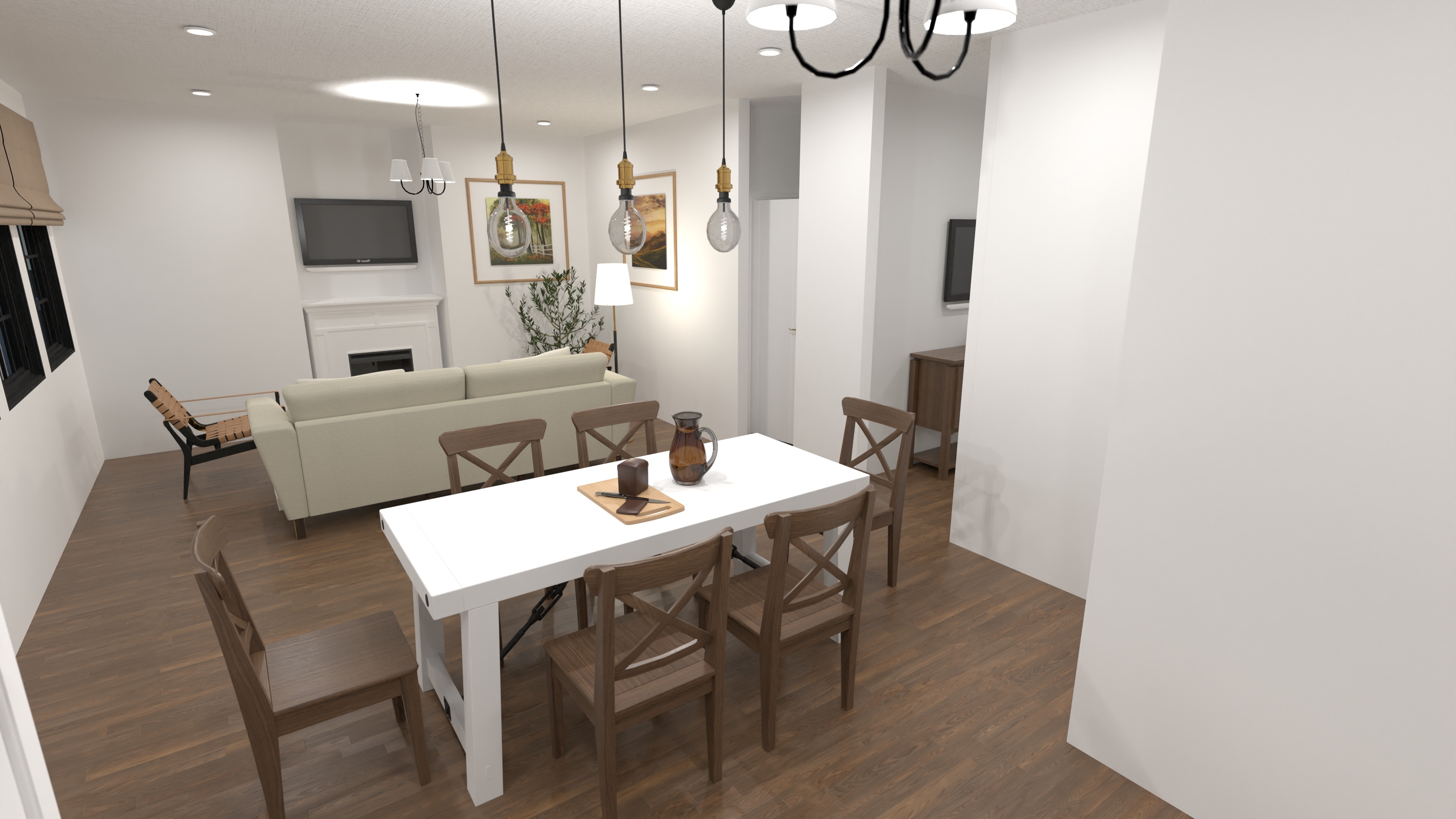 - Corner fireplace warms the open living zone