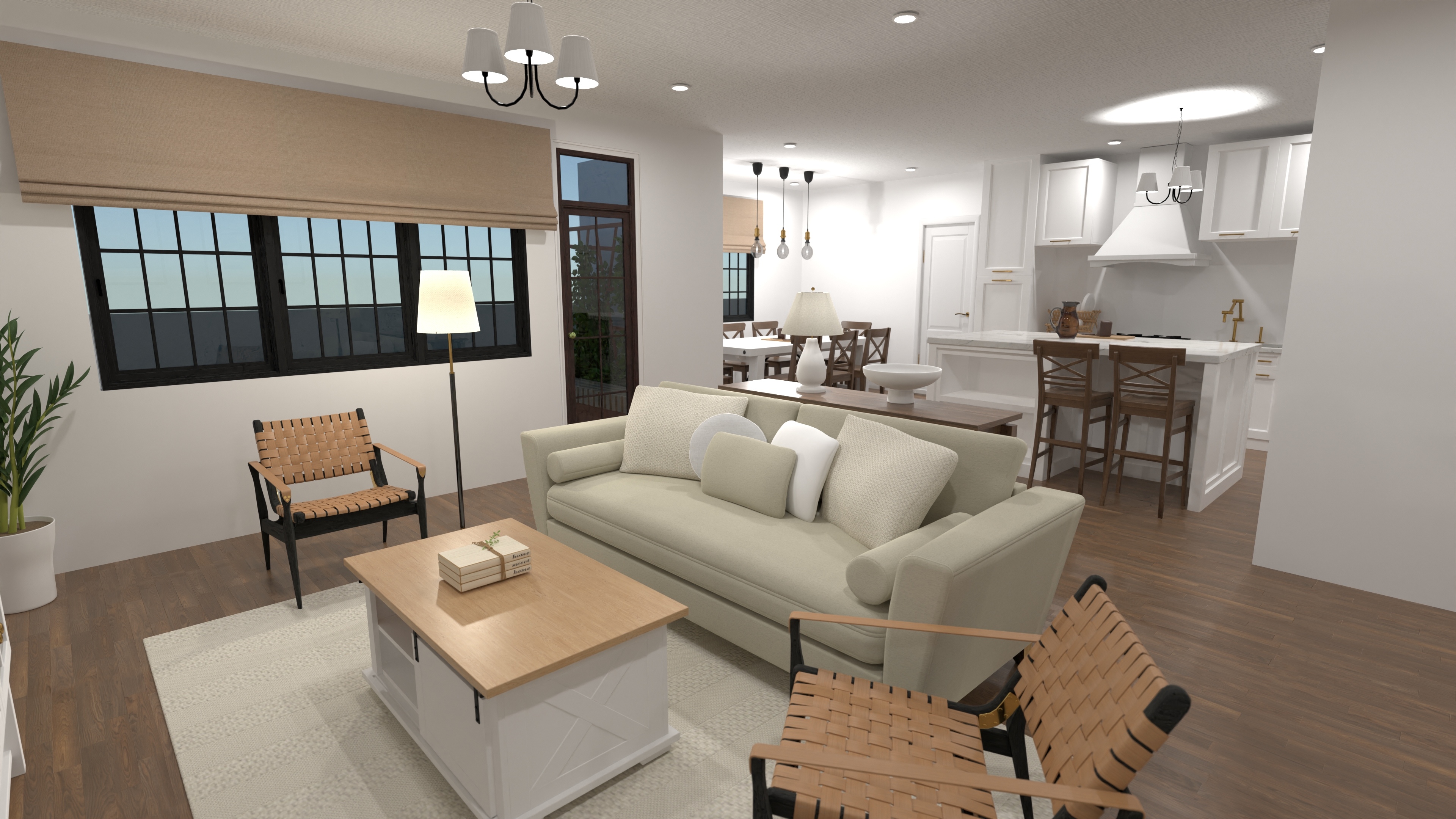 Designed for families who love room to spread out, this 2,207-sq-ft wide footprint house plan places every space on a single, easy-living level. A generous great room flows into an island kitchen and formal dining area while rear doors invite seamless indoor-outdoor entertaining.