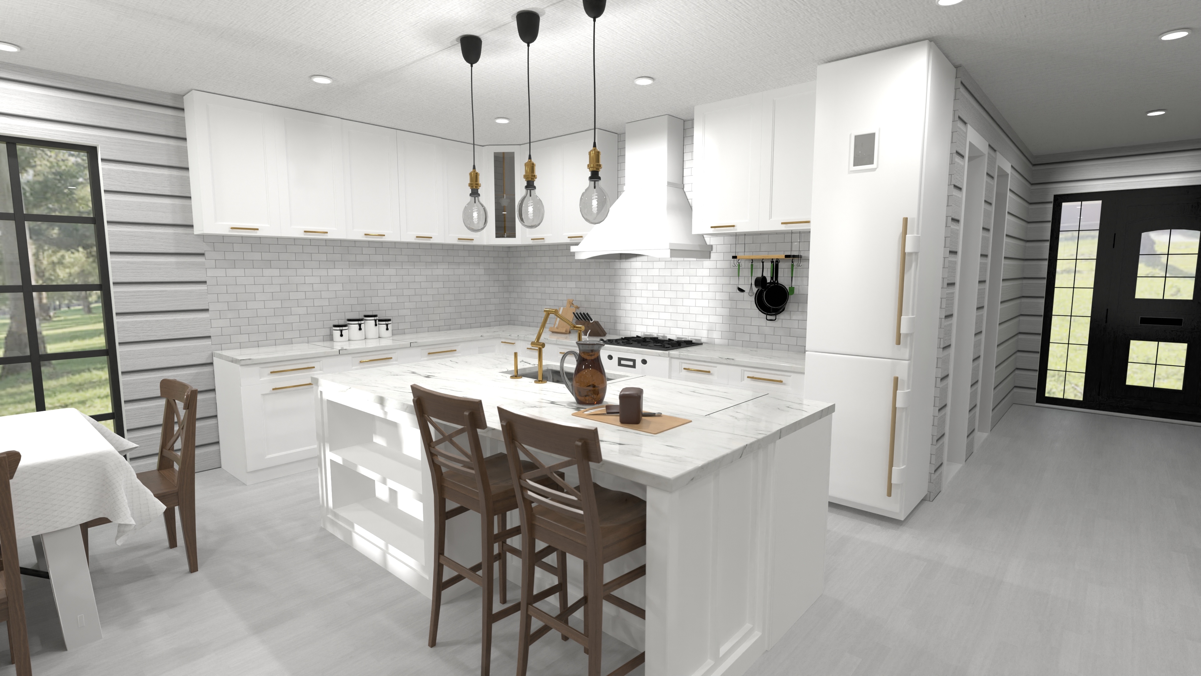 This 1,690-sq-ft L shaped house plan delivers effortless one-story living wrapped around an attached garage. Step through the front entry and the open-concept great room, dining area, and island kitchen create a bright hub perfect for family gatherings or casual entertaining.