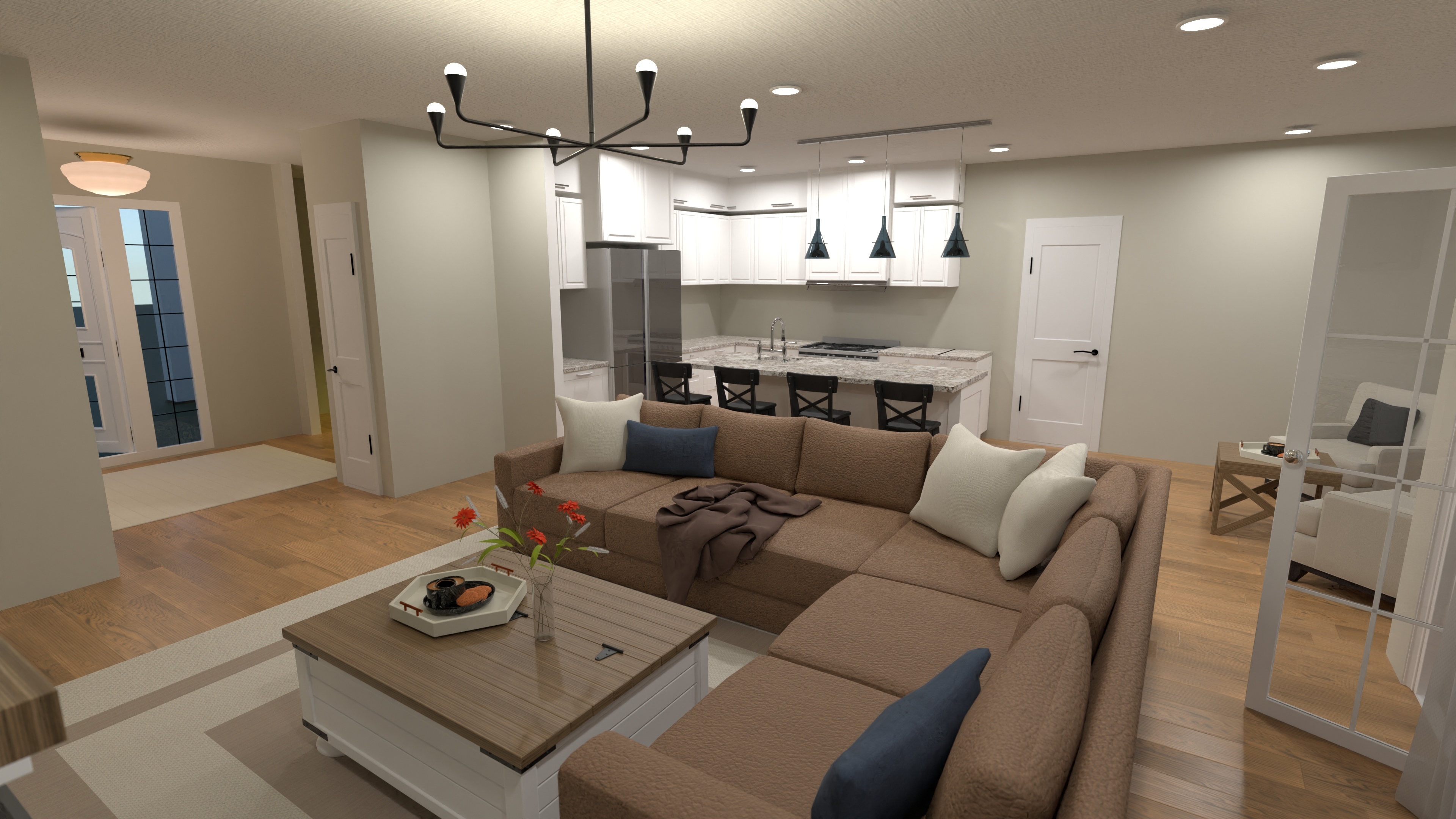 A front-entry two-car garage, generous laundry room, and dual walk-in closets boost daily convenience, making this design perfect for modern families who crave style, flexibility, and effortless indoor-outdoor living.