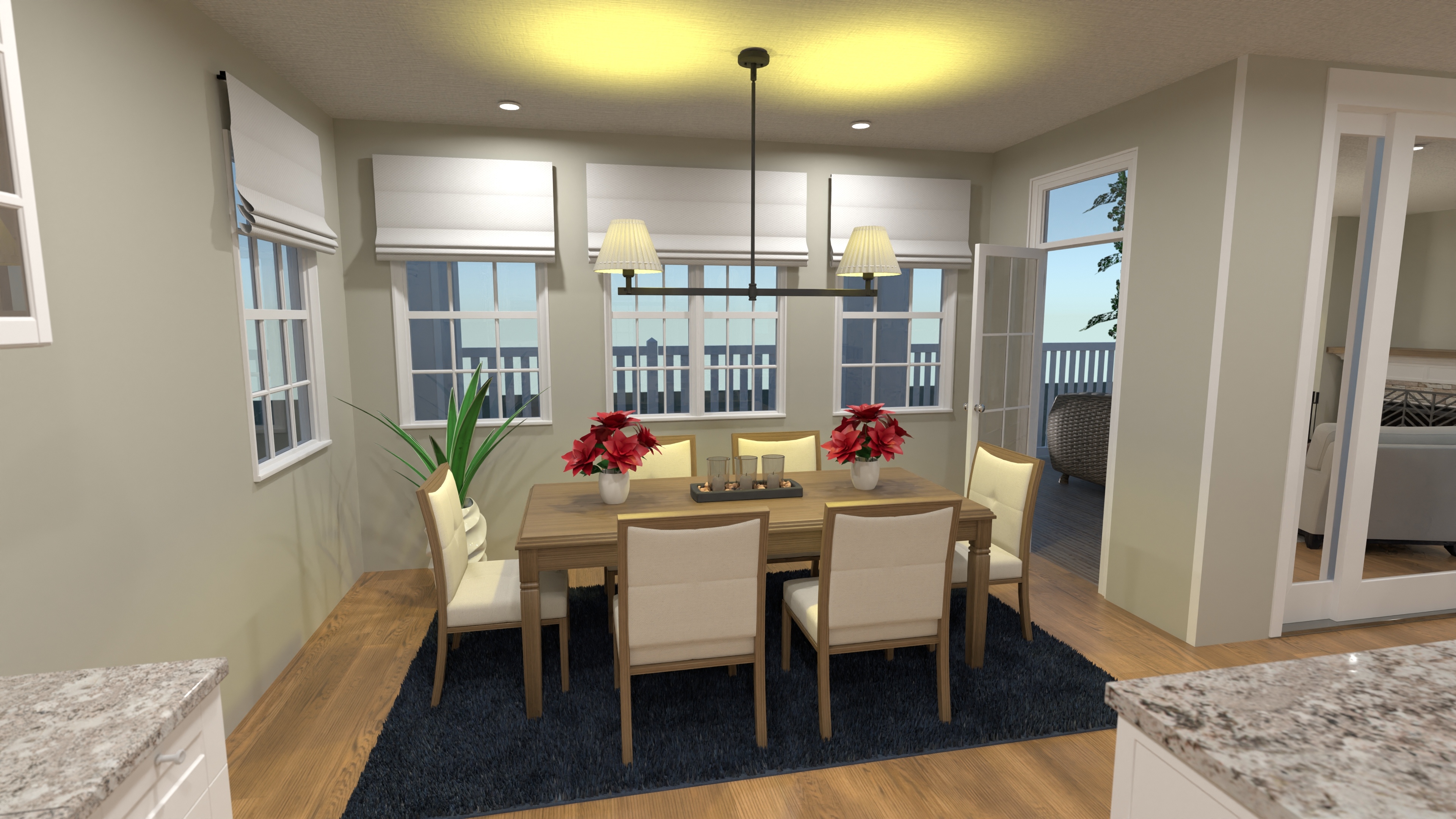 - Covered patio extends the great room outdoors