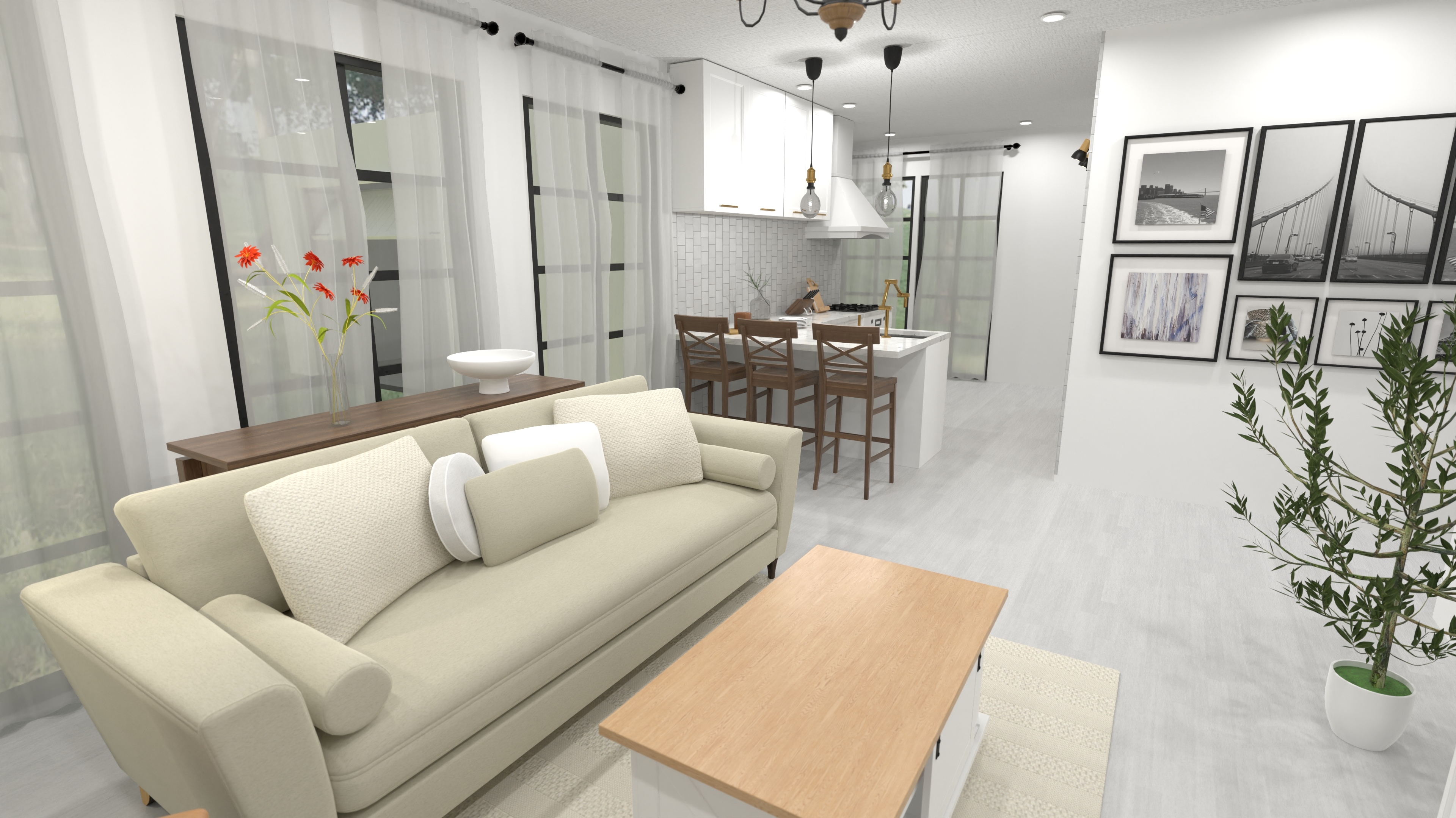Step into easy single-level living with this one floor boho house blueprint. At about 1,430 sq ft, the open-concept kitchen, island bar, and fire-lit great room invite effortless family time and entertaining.