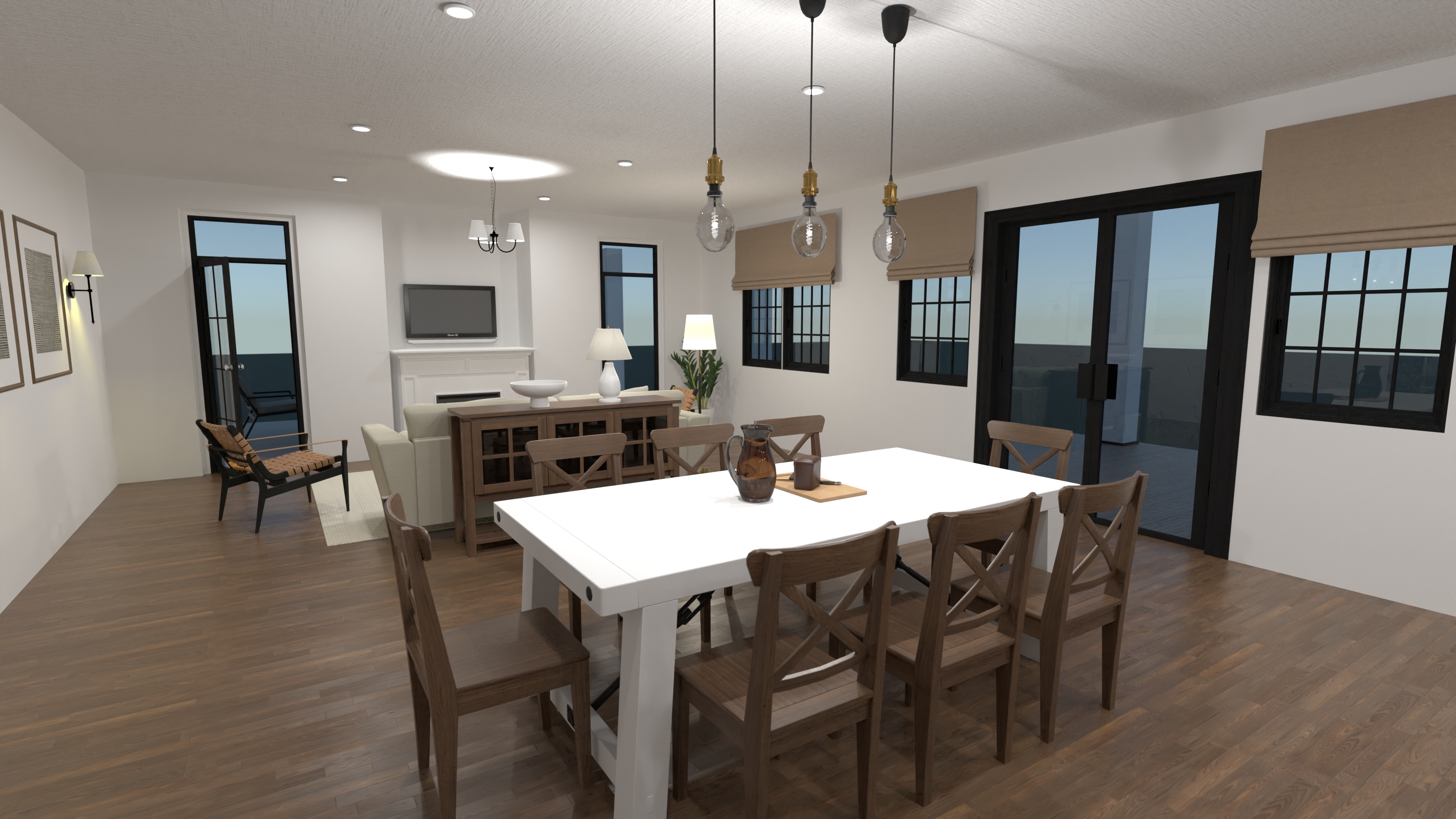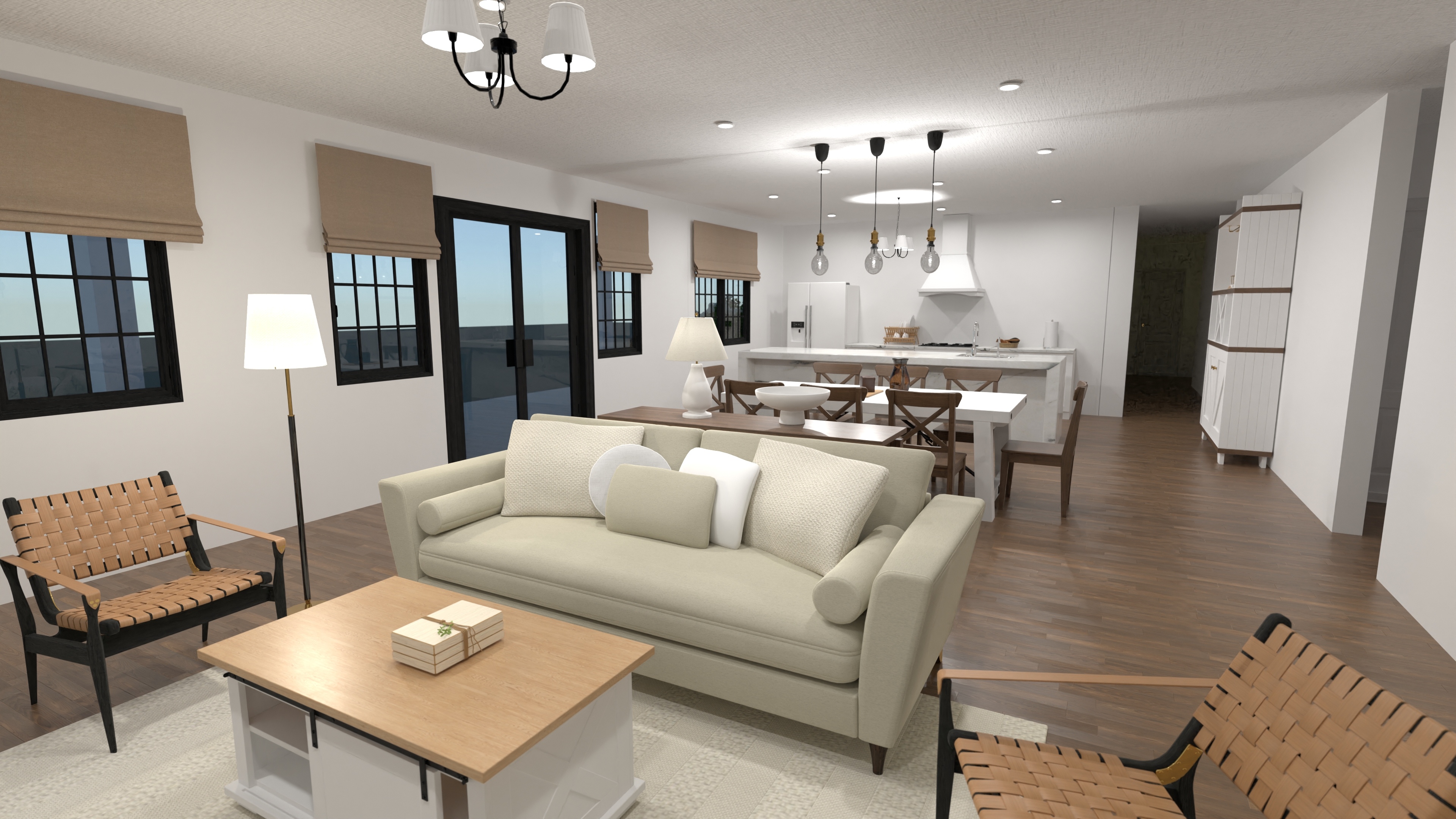 Embrace casually chic living in this boho modern house plan measuring about 2,500 sq ft. A welcoming porch opens to a light-filled great room where living, dining, and an oversized island kitchen flow effortlessly—perfect for weeknight meals or lively gatherings.