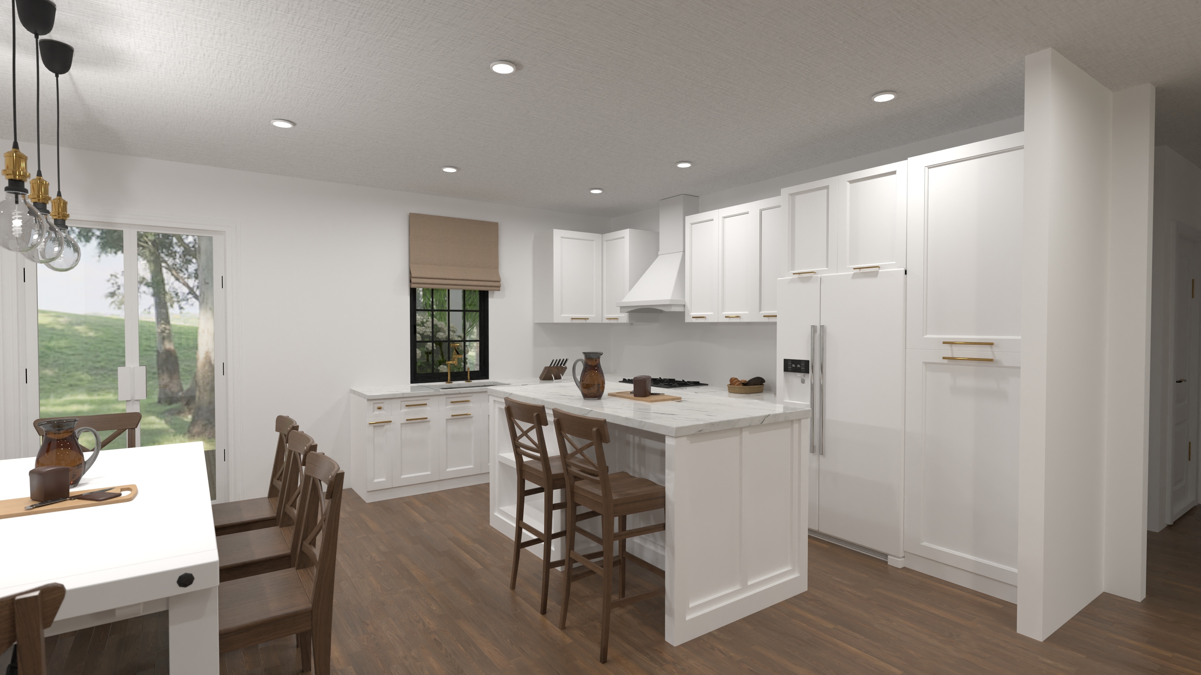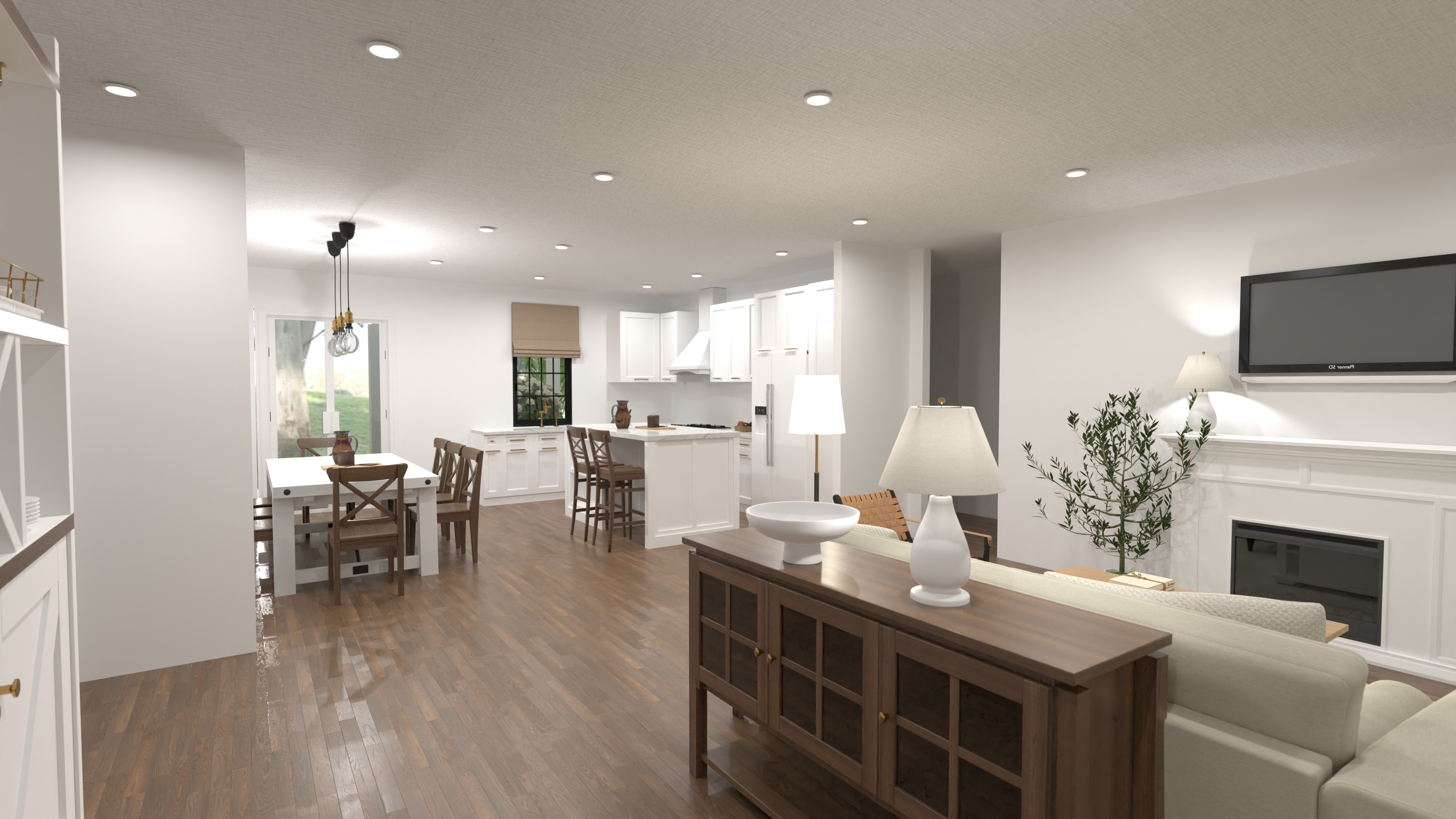 Step into 1,700 sq ft of effortless living with this single floor ranch house plan. A welcoming porch opens to an airy great-room where kitchen, dining and living spaces blend for easy family time and entertaining. Nine-foot ceilings and plenty of windows keep everything bright.