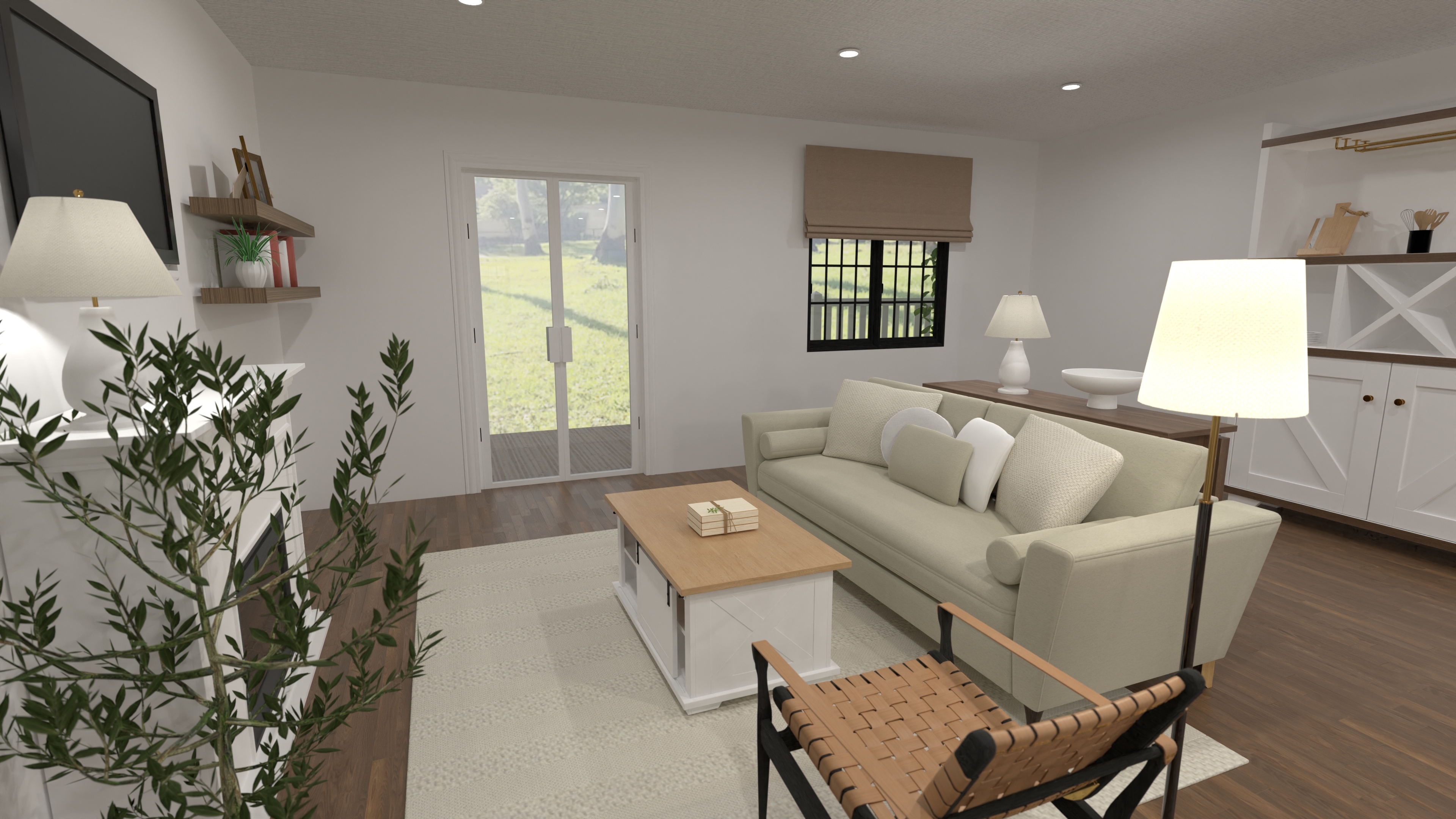 Three well-sized bedrooms sit on a single level, served by two full baths plus a convenient powder room. The owner’s suite enjoys its own bath and walk-in wardrobe, while a nearby laundry keeps chores simple. A front-entry two-car garage, covered patio, and generous pantry round out a layout built for modern comfort.